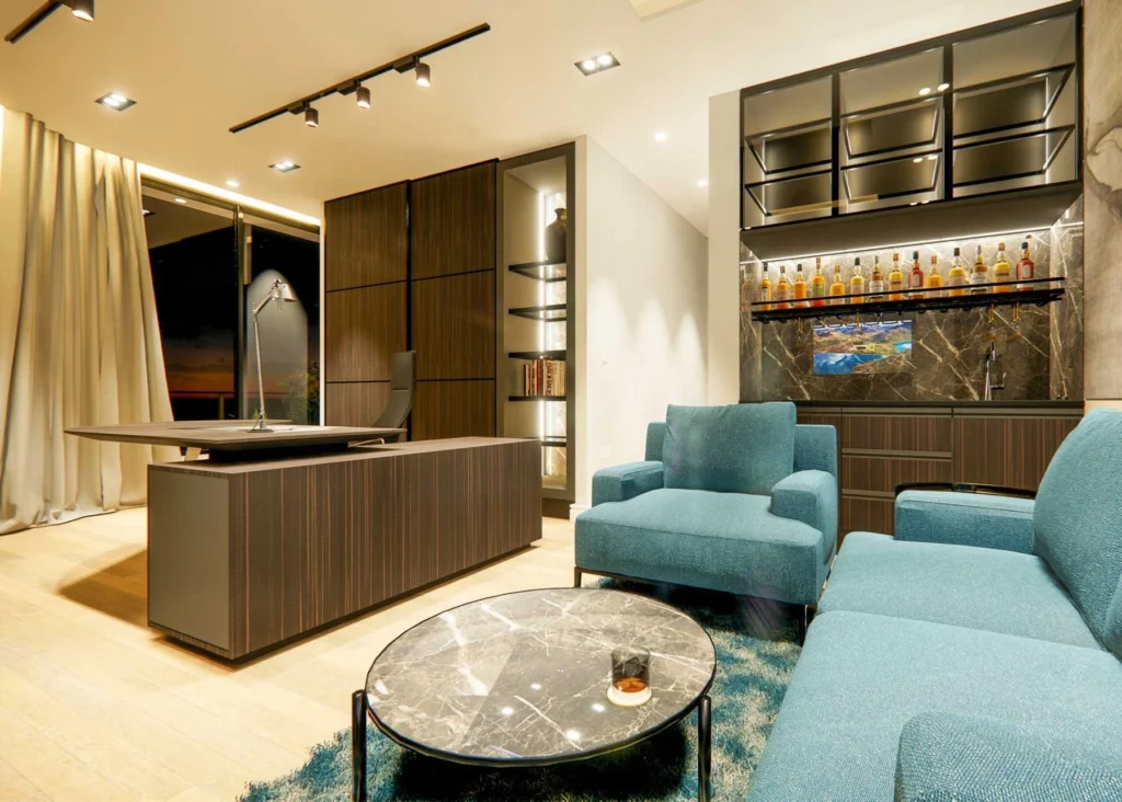 With a flexible layout, the villa allows for customization to suit your personal vision. Two private entrances lead to a covered parking area for three cars, with additional outdoor spaces. Designed for both comfort and entertainment, the property includes generous living areas, en-suite bedrooms with walk-in wardrobes, and dedicated space for a gym, spa, and sauna.