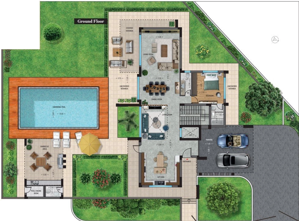 Designed to the highest standards of luxury, each residence is a statement of contemporary elegance, featuring marble-clad facades, grand floor-to-ceiling windows, and expansive terraces that seamlessly blend indoor and outdoor living. The interiors exude understated opulence, with grand living spaces, individually designed master suites with walk-in wardrobes, and private spa areas. Smart home automation, underfloor heating, centralized air conditioning, and a private elevator ensure an unmatched level of comfort and convenience.