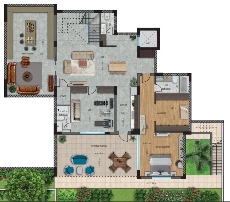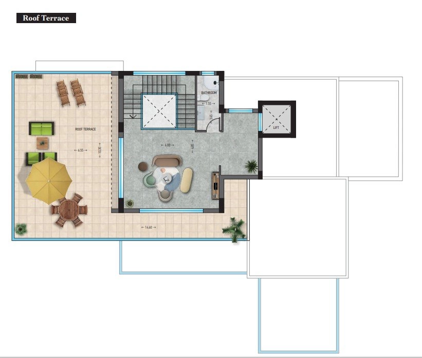Designed to the highest standards of luxury, each residence is a statement of contemporary elegance, featuring marble-clad facades, grand floor-to-ceiling windows, and expansive terraces that seamlessly blend indoor and outdoor living. The interiors exude understated opulence, with grand living spaces, individually designed master suites with walk-in wardrobes, and private spa areas. Smart home automation, underfloor heating, centralized air conditioning, and a private elevator ensure an unmatched level of comfort and convenience.