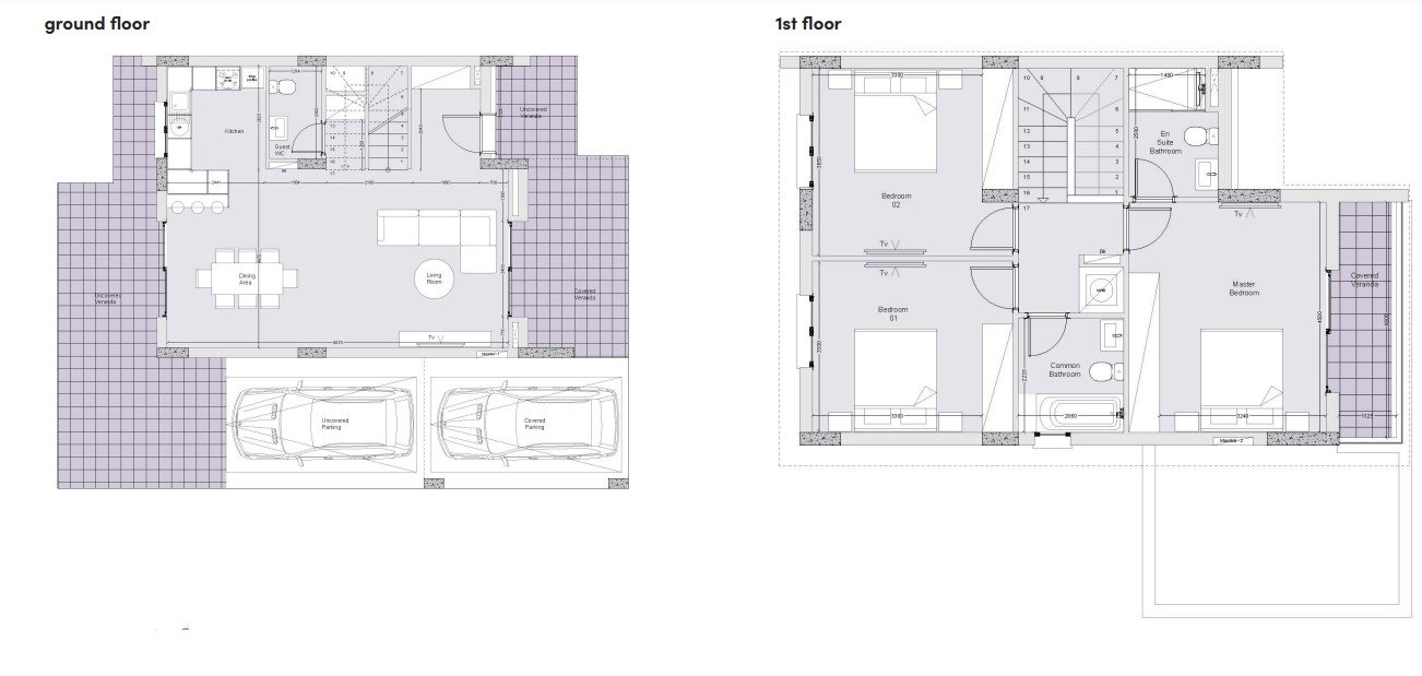 Each villa is thoughtfully crafted to balance functionality and aesthetics. Spacious living rooms with floor-to-ceiling windows, stylish kitchens, and cozy bedrooms create a sense of light and openness. High-quality finishes, including premium ceramic flooring, thermal aluminum double-glazed windows, and European-standard sanitary ware, emphasize the project’s commitment to excellence. Five-bedroom villas also feature laminated parquet floors, adding warmth and sophistication.