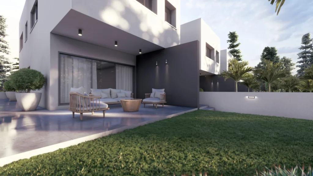 Blending modern architecture with its natural surroundings, the development features five elegantly designed two-story villas, each with three spacious bedrooms. Thoughtfully crafted for both style and functionality, these homes boast open, light-filled interiors, premium finishes, and an inviting atmosphere. Each villa includes a private garden and generous terraces, offering a personal retreat to relax and enjoy the pleasant Mediterranean climate.