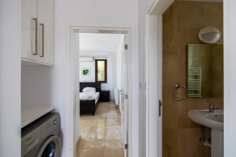 Each of the three bedrooms is generously sized, with ensuite bathrooms providing privacy and convenience. The master suite enjoys direct access to the poolside terrace.
