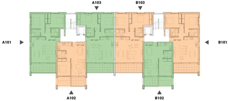 The complex consists of two stylish two-story blocks, featuring well-planned 1- and 2-bedroom apartments, as well as penthouses with private roof terraces. With contemporary architecture, expansive windows, and spacious balconies, these homes offer a cosy atmosphere to relax and enjoy the scenery.