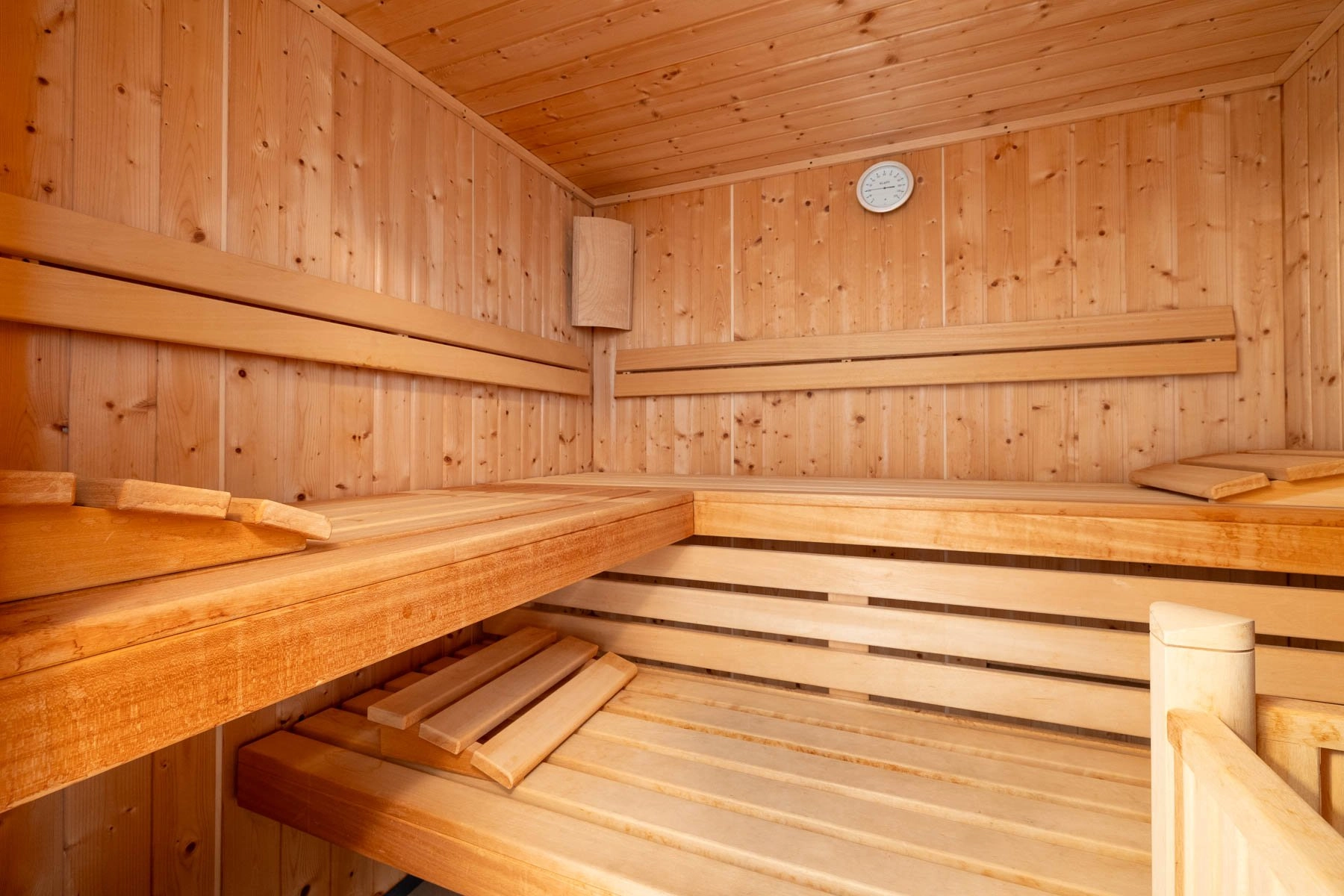 The villa includes a private sauna, an outdoor jacuzzi, and a lush mature garden, creating a tranquil retreat of unparalleled quality.