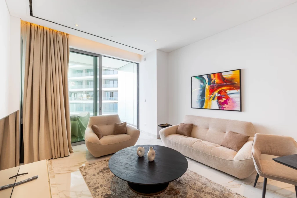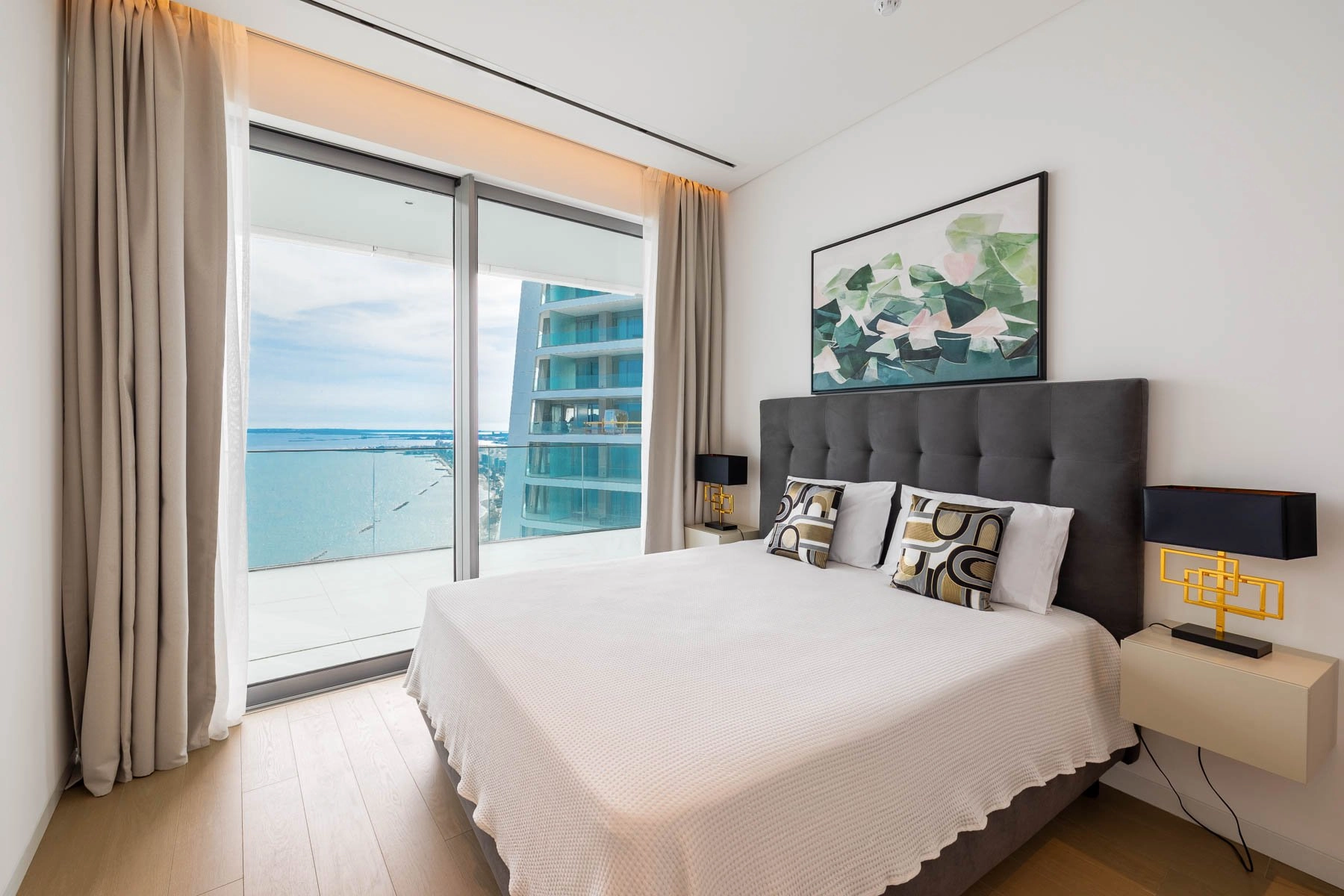 Discover this exquisite two-bedroom residence located in a contemporary high-rise, just 100 meters from the sea. Perfectly combining modern comfort with coastal elegance, this fully furnished apartment is thoughtfully designed to offer space, light, and a refined lifestyle.