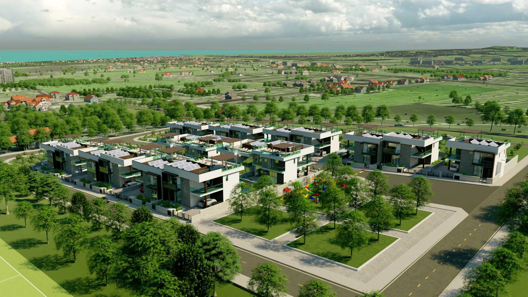 Built to high modern standards, the villas are equipped with photovoltaic panels, sound insulation inside and out, a smart home system, water pressure system, and heating. This development is a great choice for a permanent residence, a holiday escape, or a sound investment.