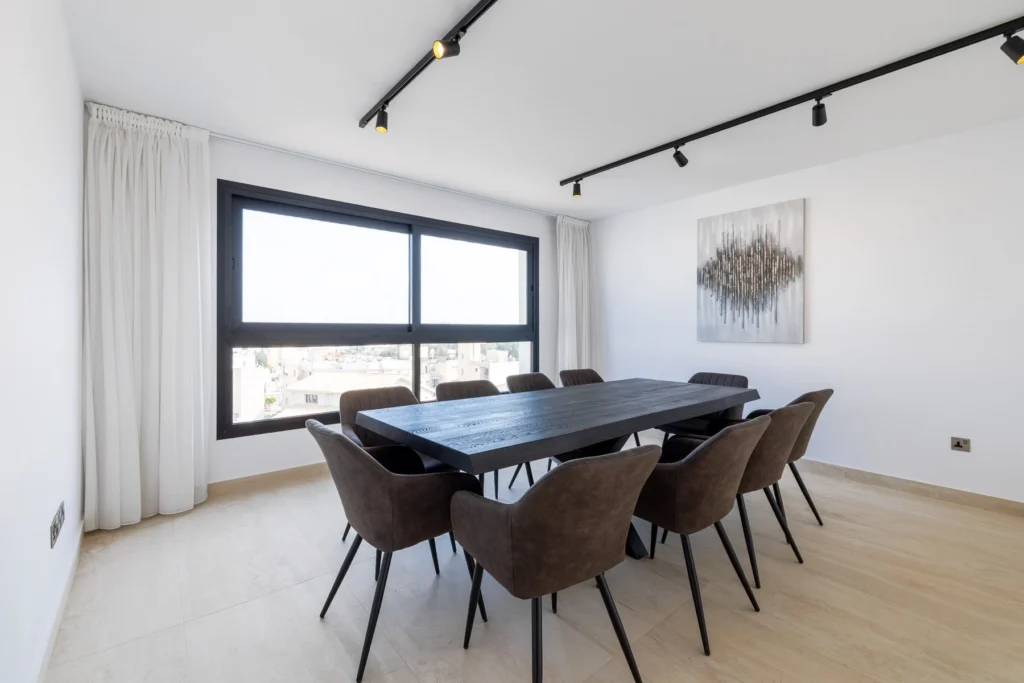 This spacious 230 m² home offers refined living with breathtaking panoramic views of the Limassol mountains and the sea. It features 3 well-appointed bedrooms, a dedicated office, 3 modern bathrooms, and a convenient guest toilet — thoughtfully designed for both comfort and functionality.