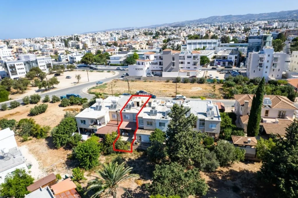 The property is a two floor apartment no.3 in Agios Theodoros quarter Paphos. The property is located 300m from Pafiako Football Stadium and 75m of Technical High School. The apartment has a covered area of 139sqm uncovered verandas of 29sqm and garden area of 50sqm.