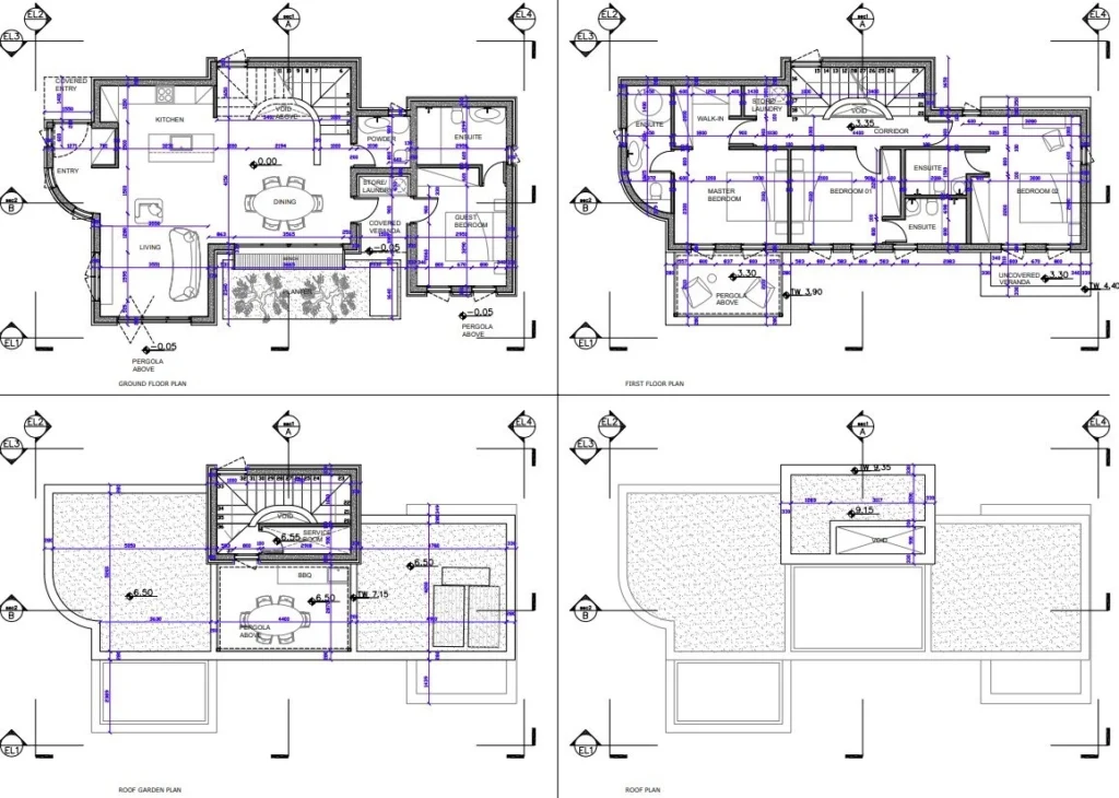 Each villa is thoughtfully designed across two levels, offering a balance of privacy and openness. Outdoor living is enhanced by shaded pergolas, water elements, and lush landscaping.