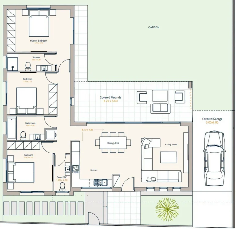 Private parking, lush landscaped gardens, spacious verandas, and designated barbecue areas provide a true sense of tranquility and outdoor living. For those seeking an extra touch of luxury, the option to add a private pool is also available.