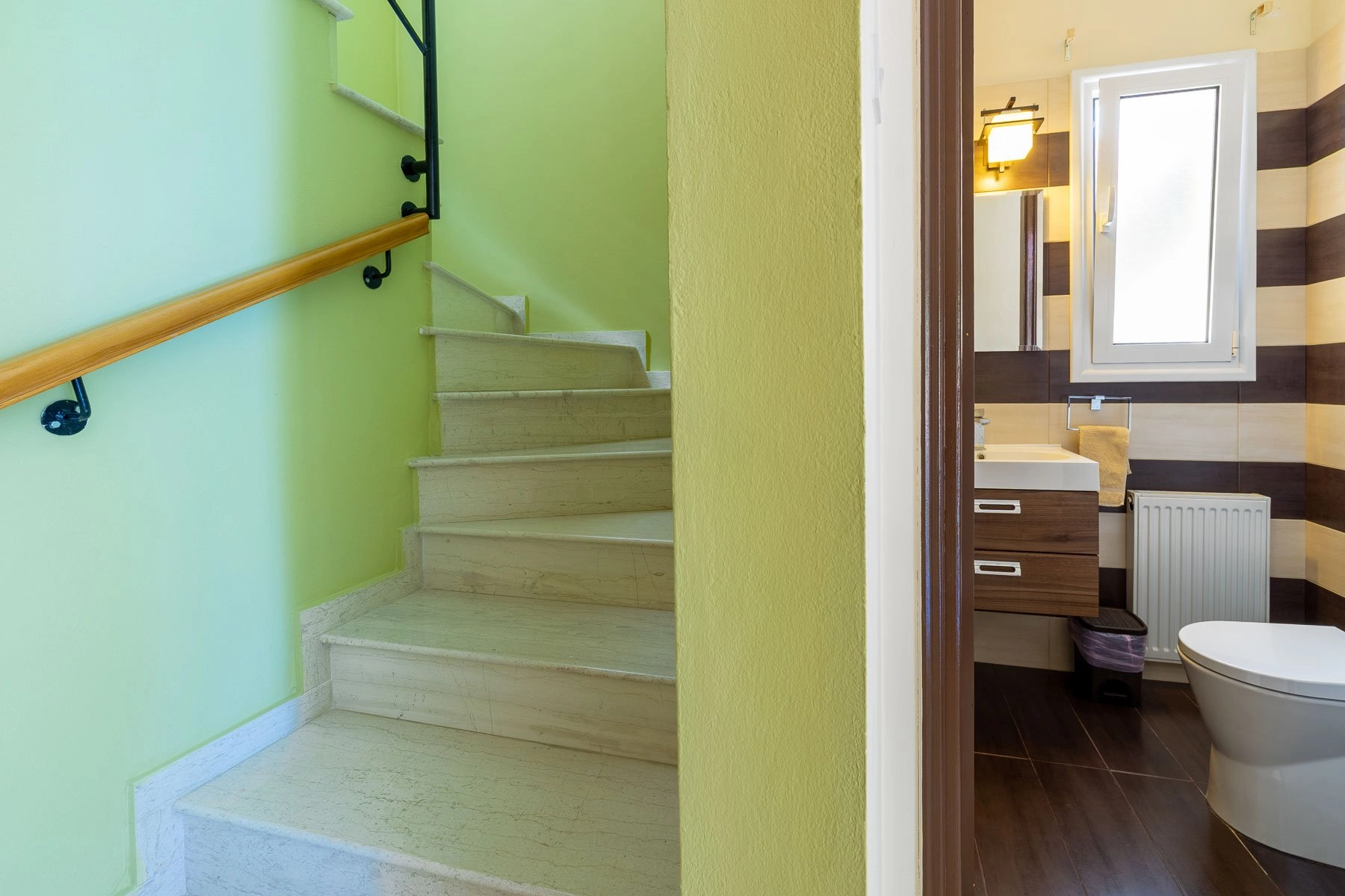 The ground floor welcomes you with a generous open-plan living and dining area, ideal for both everyday comfort and entertaining guests. A separate kitchen includes a cozy breakfast nook, while a guest WC adds convenience.