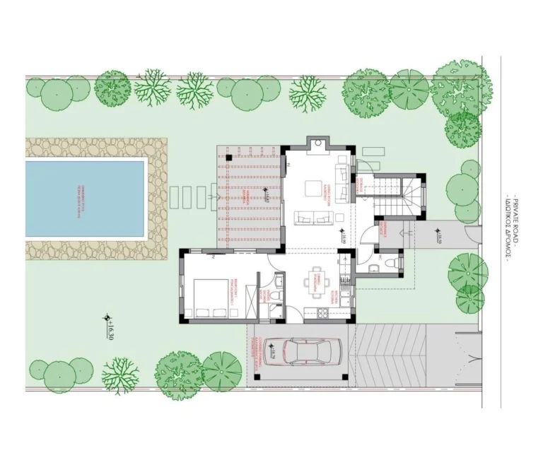 Each villa boasts a carefully planned layout, with bright, airy interiors enhanced by floor-to-ceiling windows that invite in natural light. Available in two- or three-bedroom configurations, the residences come equipped with air conditioning, solar panels, and a private swimming pool. Spacious verandas provide the perfect setting for outdoor relaxation, while landscaped gardens offer both beauty and privacy.