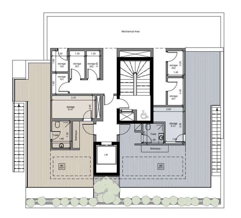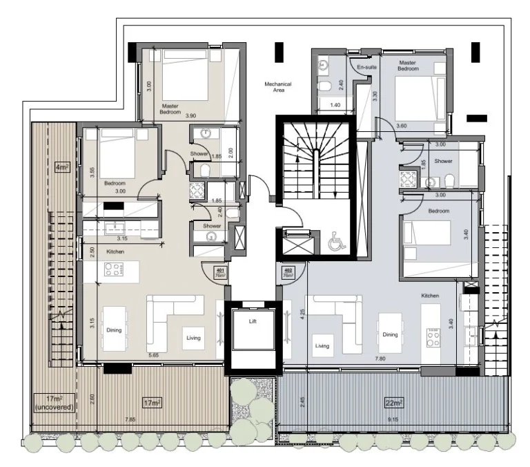 With only ten meticulously crafted apartments, the building ensures exclusivity and privacy. Each one- and two-bedroom residence is thoughtfully designed with open-plan layouts, oversized terraces, and high ceilings over 3 meters, enhancing the feeling of space and light. Floor-to-ceiling thermal aluminum windows and VRV climate systems provide year-round comfort, while photovoltaic panels, EV charging provisions, and net metering promote sustainability.