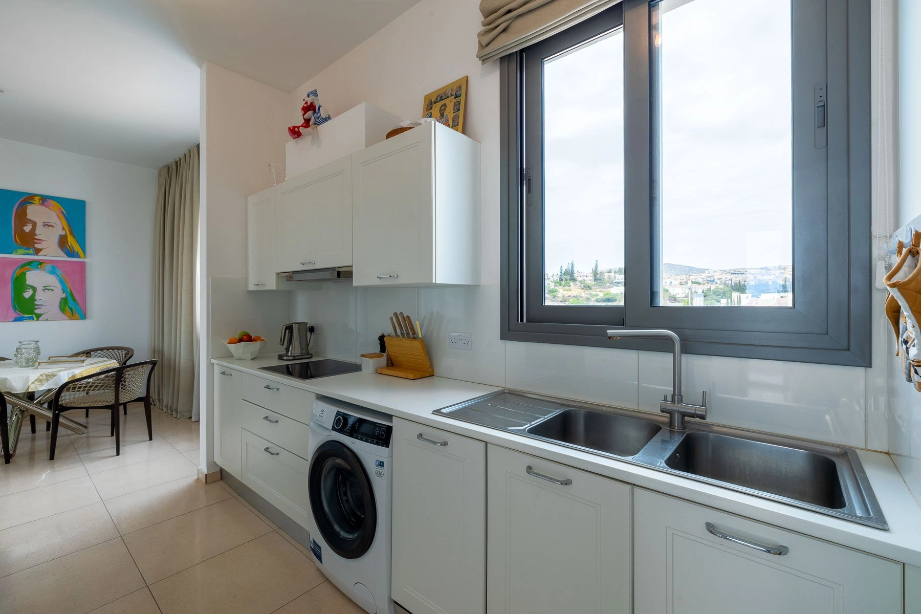Inside, the apartment boasts an open-plan living and dining area, a fully equipped kitchen, and well-appointed bedrooms with ample natural light. High-quality finishes throughout reflect a refined modern aesthetic.