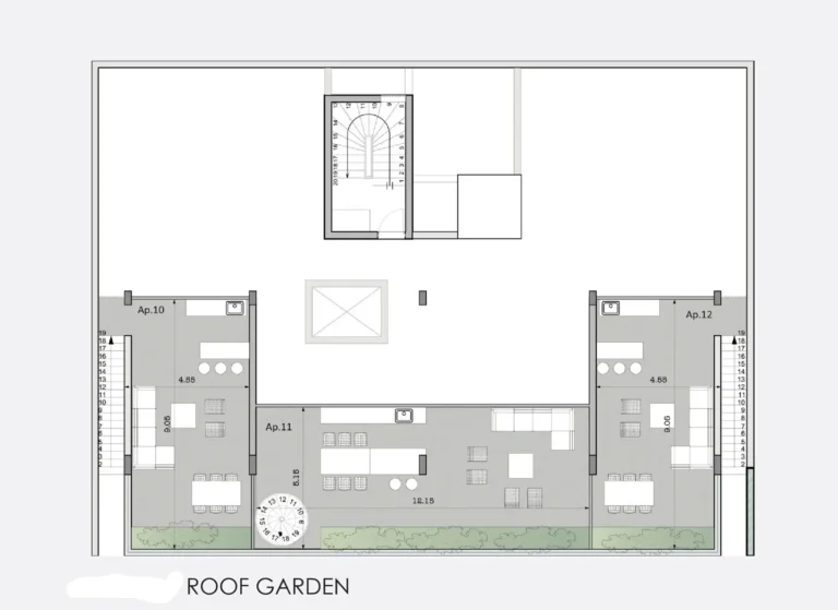 Top-floor apartments are crowned with private rooftop gardens, offering scenic views and personal outdoor space for relaxation, dining, or quiet moments under the sky. Smart home technology and A-class energy efficiency are integrated throughout the development, reflecting a commitment to sustainable modern comfort.