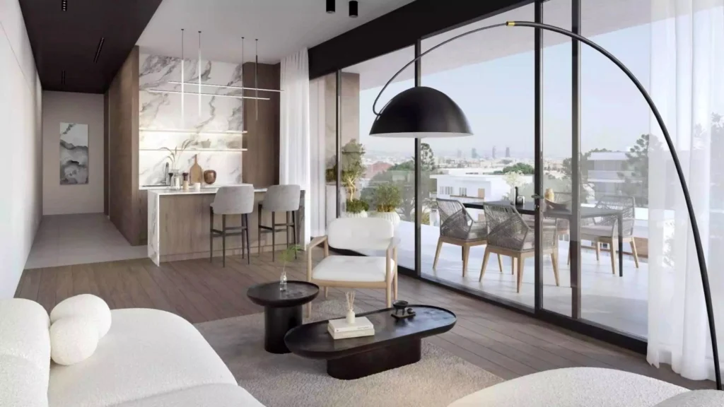 Clean architectural lines, natural materials, and expansive glass facades create a harmonious interplay between form and function. Every residence features soaring three-meter ceilings, water-based underfloor heating, and concealed ducted air conditioning. Spacious private balconies and terraces extend the living areas outdoors, while penthouses boast rooftop gardens with private pools and panoramic city views.