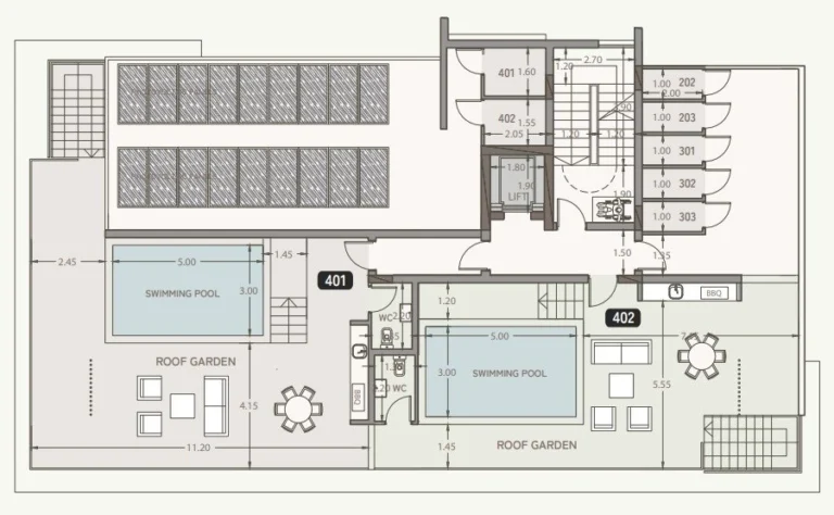 Clean architectural lines, natural materials, and expansive glass facades create a harmonious interplay between form and function. Every residence features soaring three-meter ceilings, water-based underfloor heating, and concealed ducted air conditioning. Spacious private balconies and terraces extend the living areas outdoors, while penthouses boast rooftop gardens with private pools and panoramic city views.