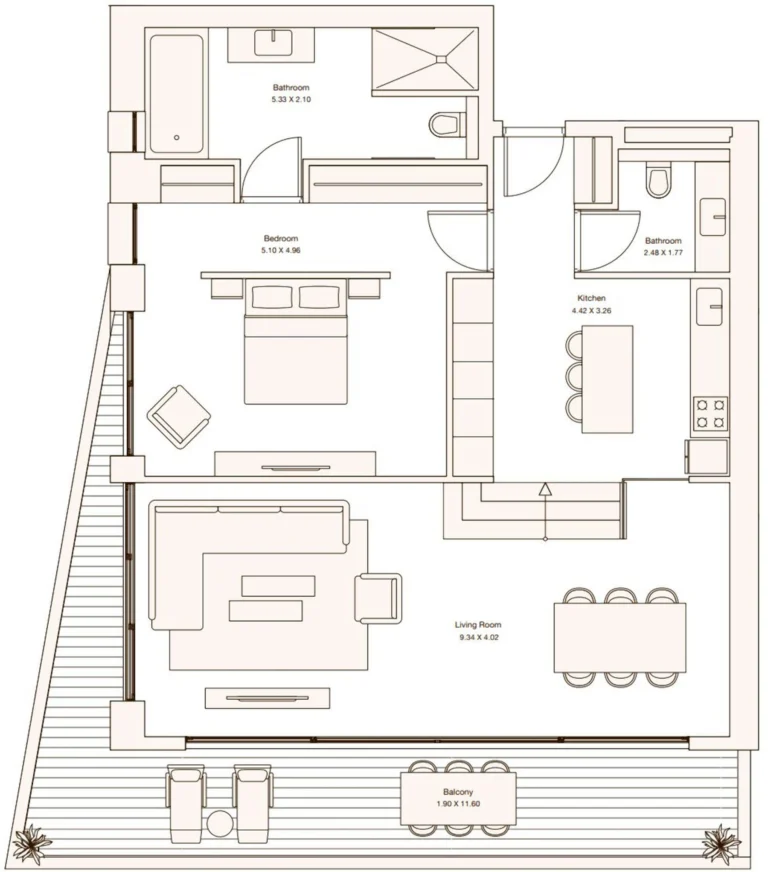 Fronting the sea, an elegant five-story building hosts a collection of one- and two-bedroom apartments. With sweeping terraces, rooftop and indoor pools, uninterrupted sea views, and premium finishes throughout, these residences define elevated coastal elegance.