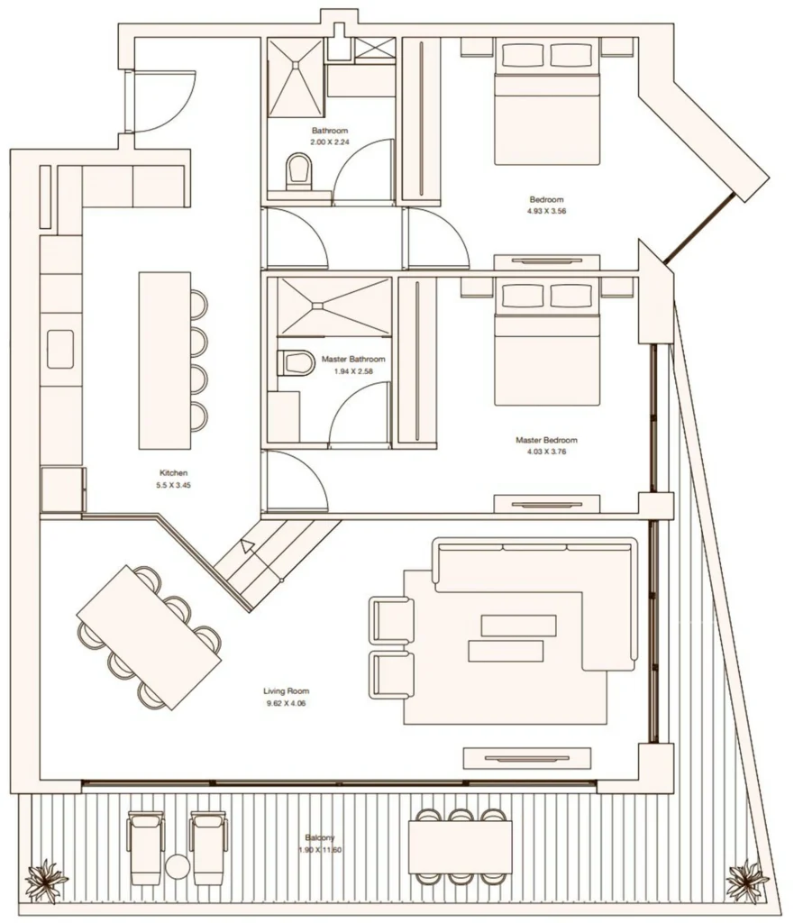 Fronting the sea, an elegant five-story building hosts a collection of one- and two-bedroom apartments. With sweeping terraces, rooftop and indoor pools, uninterrupted sea views, and premium finishes throughout, these residences define elevated coastal elegance.