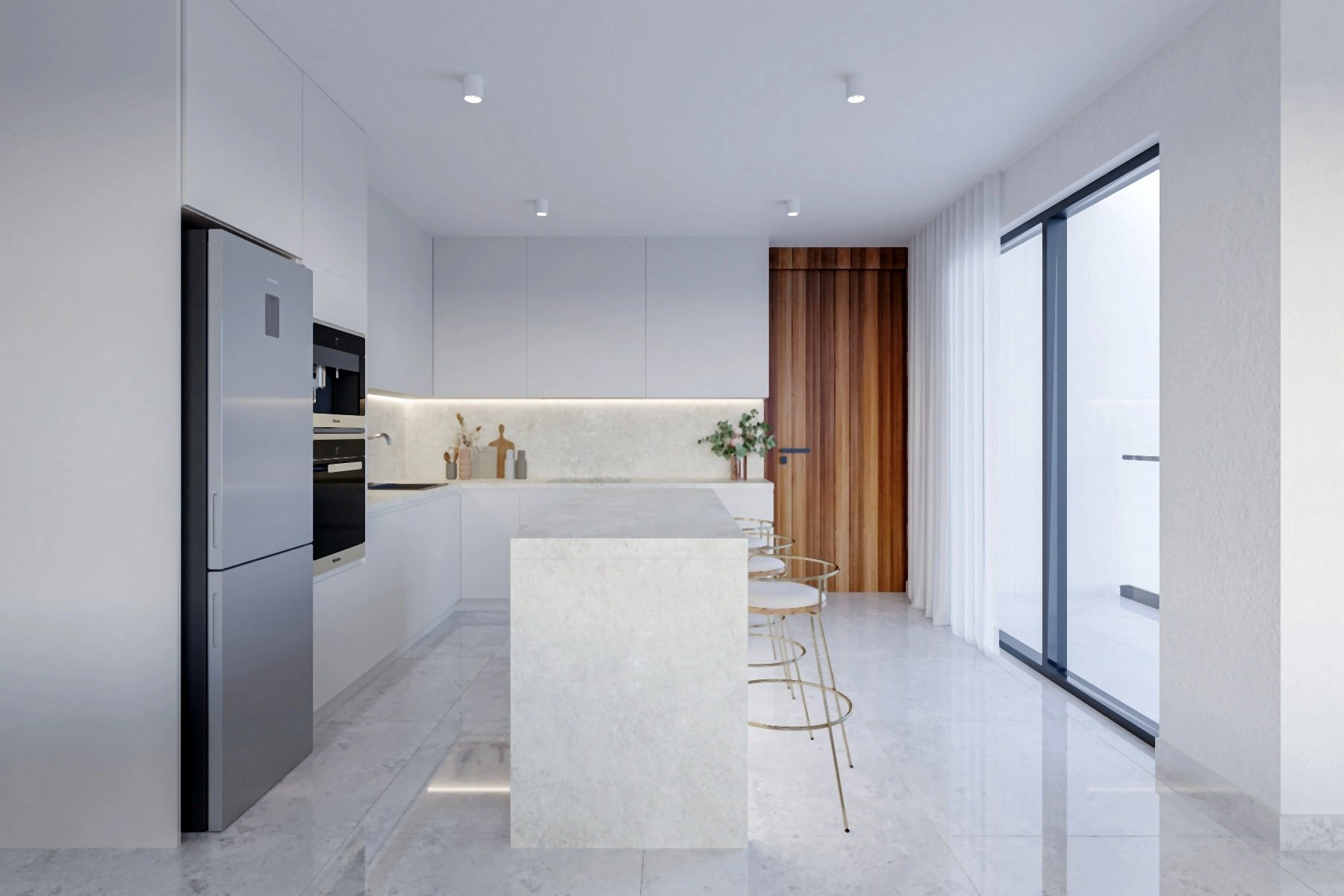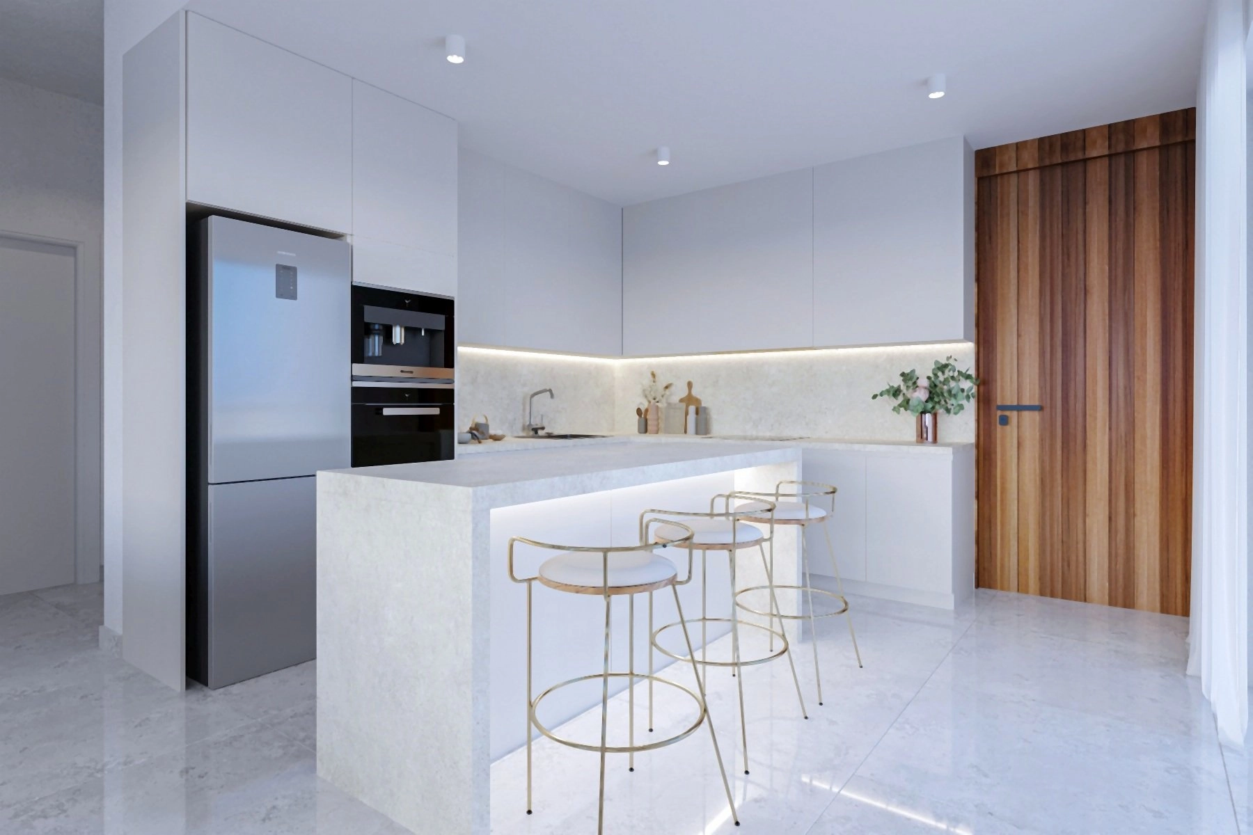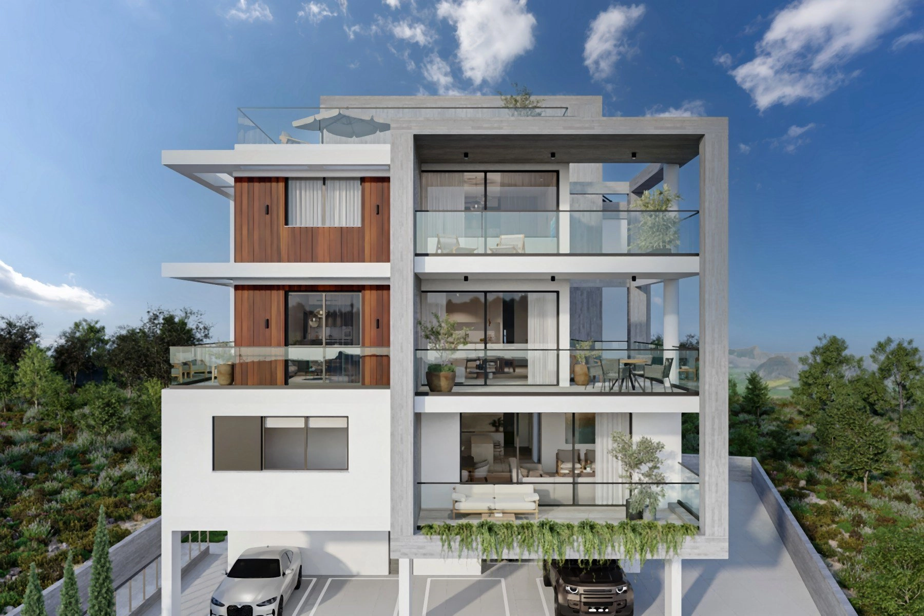The development comprises just six elegant residences: five spacious two-bedroom apartments—two of which are exclusive penthouses with private rooftop gardens—and one expansive three-bedroom apartment. All residences are designed with open-plan interiors, large verandas, and refined finishes that create a bright and welcoming atmosphere.