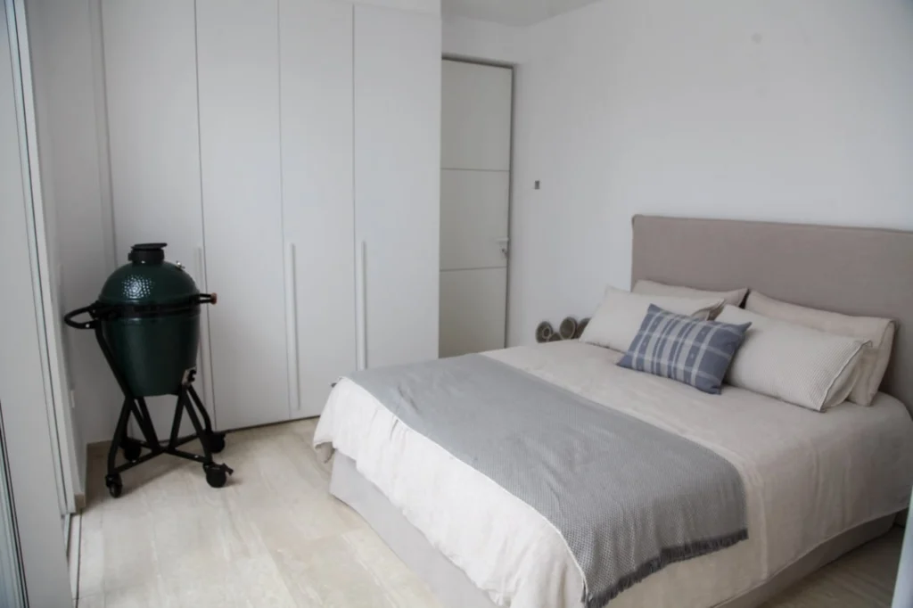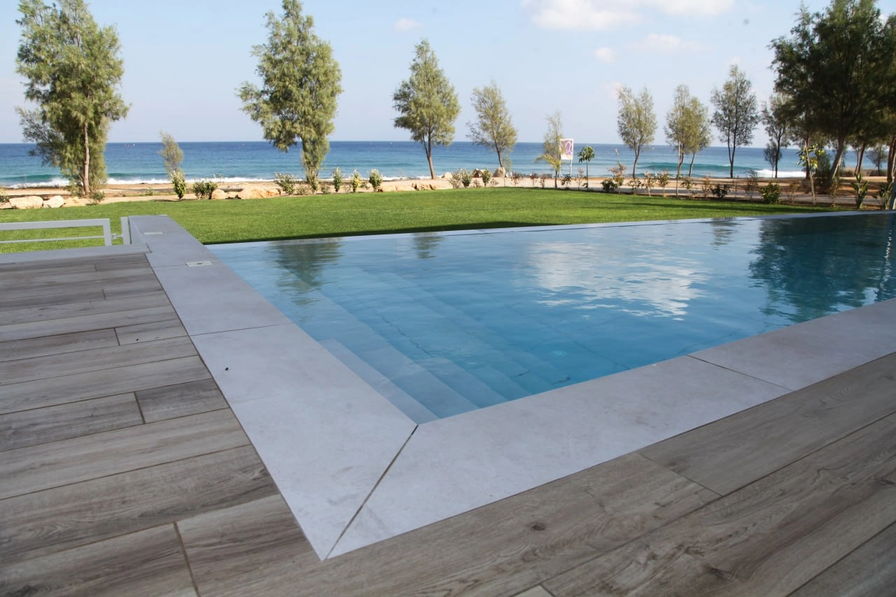 Luxury, spacious villa for sale on the Mediterranean coast in the area of Agia Triada, Kapparis beach, Famagusta. The villa is located on the first line, just 50 meters from the sea, and offers panoramic sea views. The house has 5 bedrooms, more than 5 bathrooms, a living area of 412 m2, a total area of 574 m2, and a plot area of 946 m2. Modern architectural design, high—quality finishing materials, a large swimming pool – all this creates an ideal space for a luxurious life by the sea.