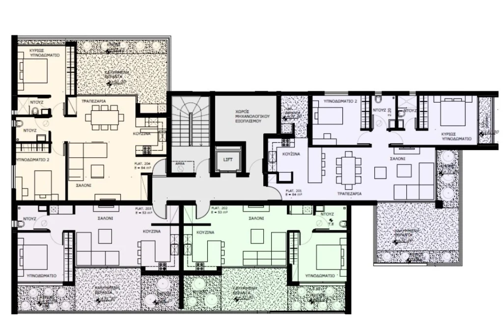 Within this exclusive complex, there are only 14 meticulously designed apartments. Crafted with premium materials, each residence features underfloor heating, air conditioning, contemporary kitchen furniture, built-in wardrobes, and fully equipped bathrooms. Residents benefit from covered parking spaces and spacious storage rooms, enhancing comfort and convenience.