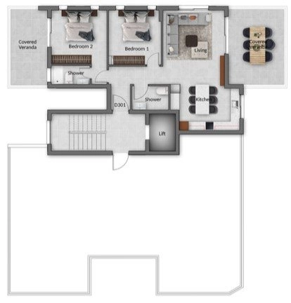 • Covered Veranda: 35 m²