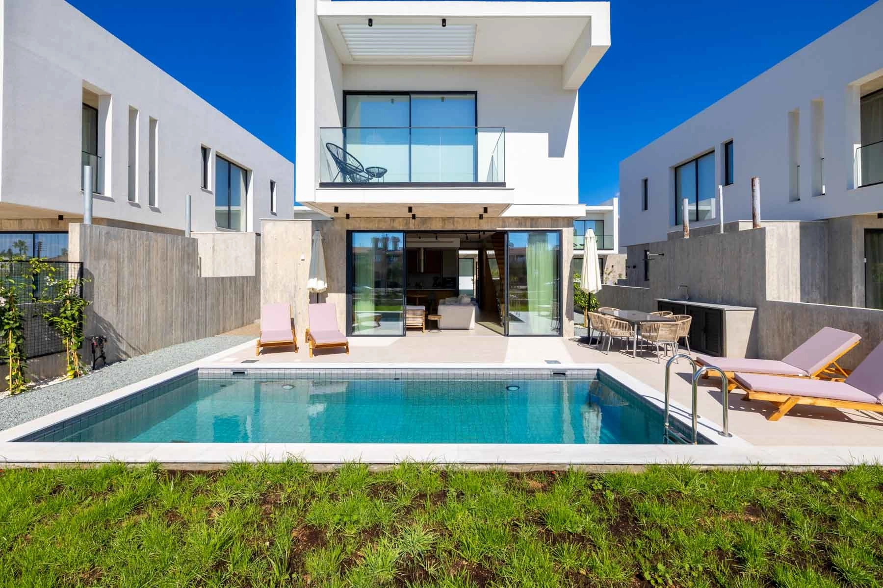 Outdoors, a private swimming pool, spacious sun terrace, and built-in barbecue area invite you to enjoy Cyprus’s sunny climate in total privacy. Whether lounging poolside, dining al fresco, or hosting friends, every detail is designed for relaxed Mediterranean living.