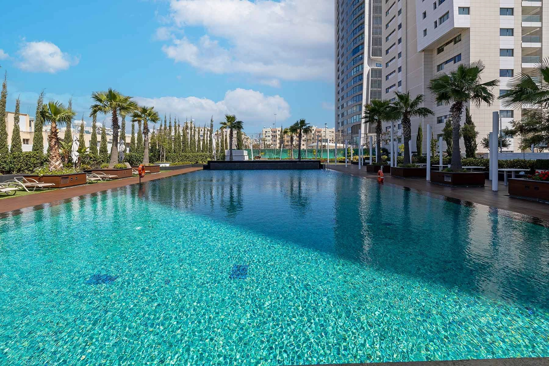 Residents of this iconic complex enjoy a curated lifestyle supported by hotel-level services: a 24/7 concierge, private underground parking with direct lift access, and advanced security systems for total peace of mind. Amenities include a swimming pool, wellness facilities, landscaped courtyard with boutique shopping, a café, and a private pedestrian bridge leading directly to the beach.