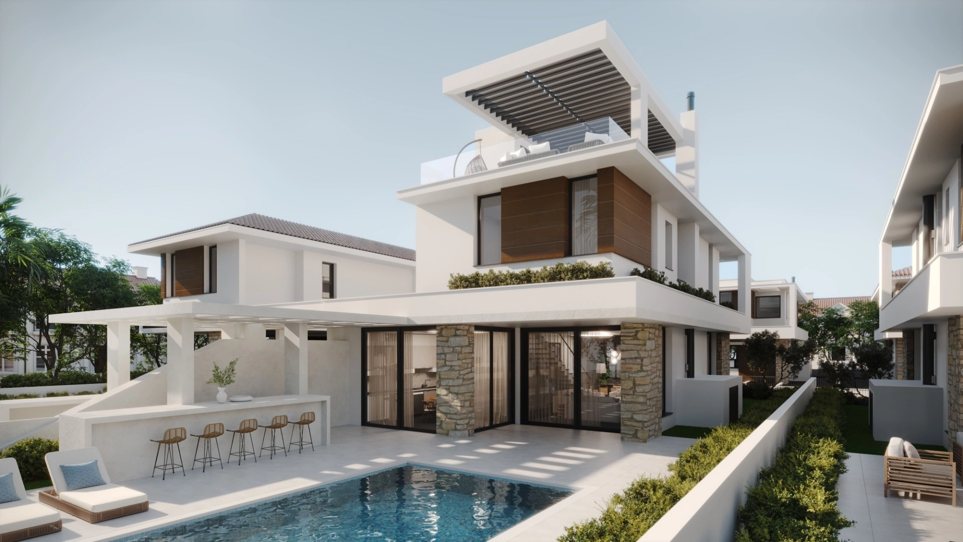 Reference ID: #SA31004Price details: €603,000 +VATGated complex at a prime location with easy access to the highway and within walking distance to the beach. Private swimming pool included for each residence.PROPERTY FEATURESEnergy efficiency rated AOutdoor poolOpen-plan layout: living room & dining areaSolar panels for water heatingWater pressuring systemEnsuite bedroom optionsLaundry room on ground floorRoof garden optionFireplaceWall-mounted toiletsMarble staircasesLocal natural stone decoration on the exteriorCovered parking portsBBQ area & bar featuresDEVELOPMENT AMENITIESGated communityDetached residences in spacious plotsLandscaped gardensEasy access to highwayWalking distance to blue flagged beachesNearby: city center, shopping, diningentertaining options