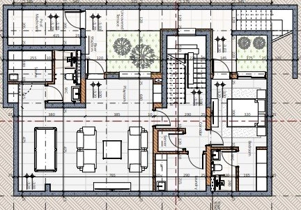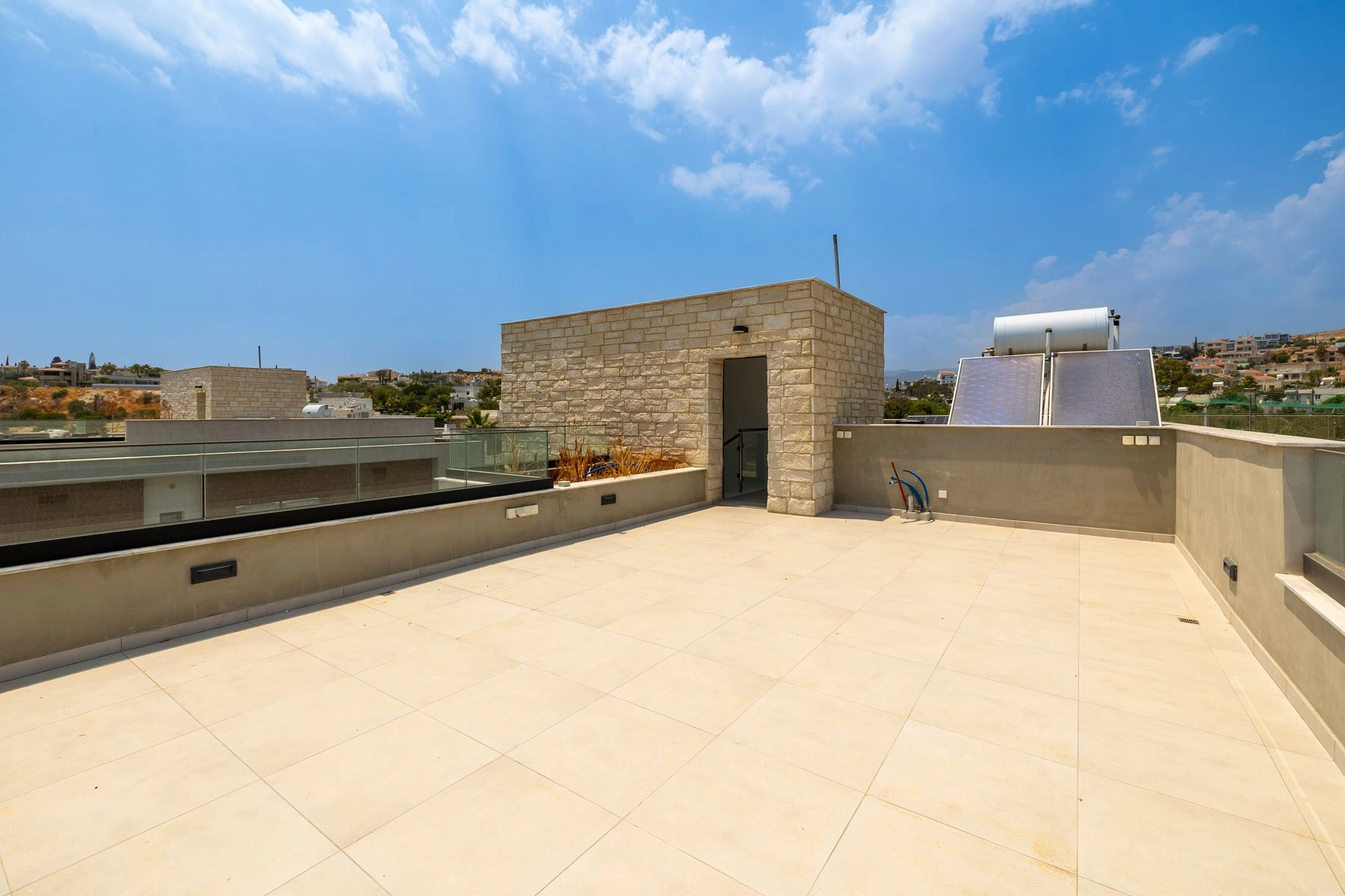 The beautifully landscaped garden surrounds a private swimming pool, creating a tranquil setting for relaxation and entertaining. A rooftop garden provides sweeping mountain views, adding a serene escape to enjoy Cyprus’s mild climate.