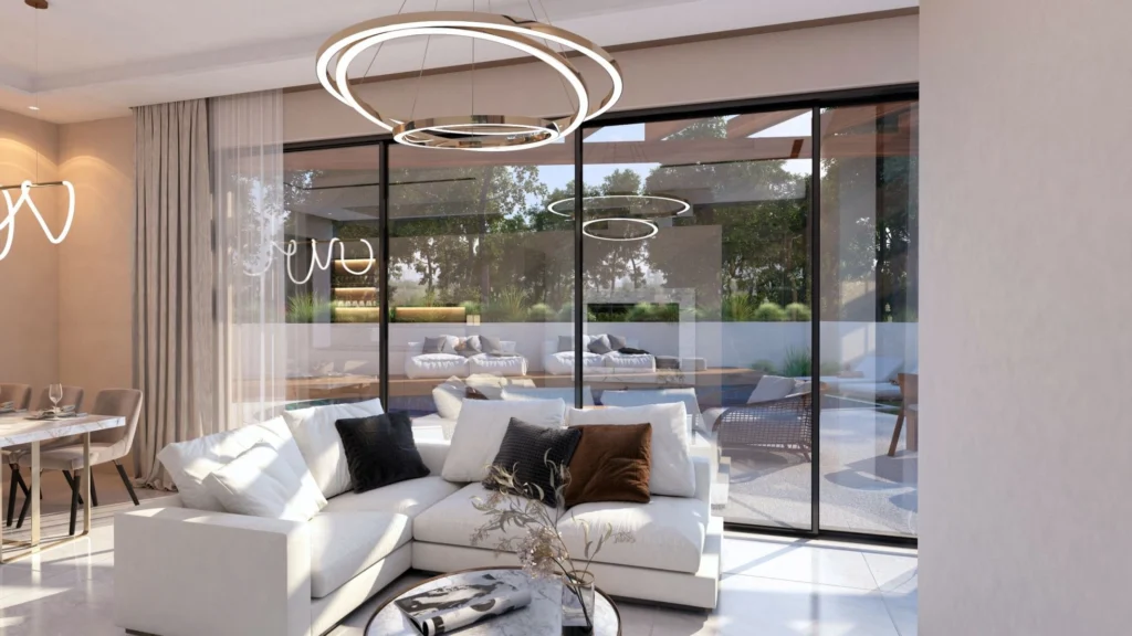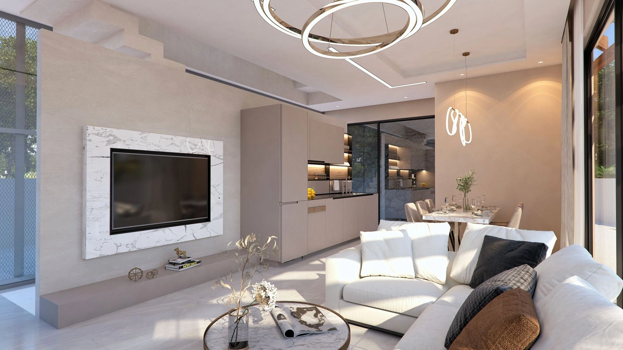 Set on a generous 370 sq. m plot with 267 sq. m of covered living space, the villa features striking contemporary architecture and a thoughtfully designed interior. Bright and spacious, it offers seven beautifully appointed bedrooms with ensuite bathrooms, expansive living and dining areas, and a sleek open-plan kitchen with high-end finishes and ample storage—perfect for both everyday living and elegant entertaining.