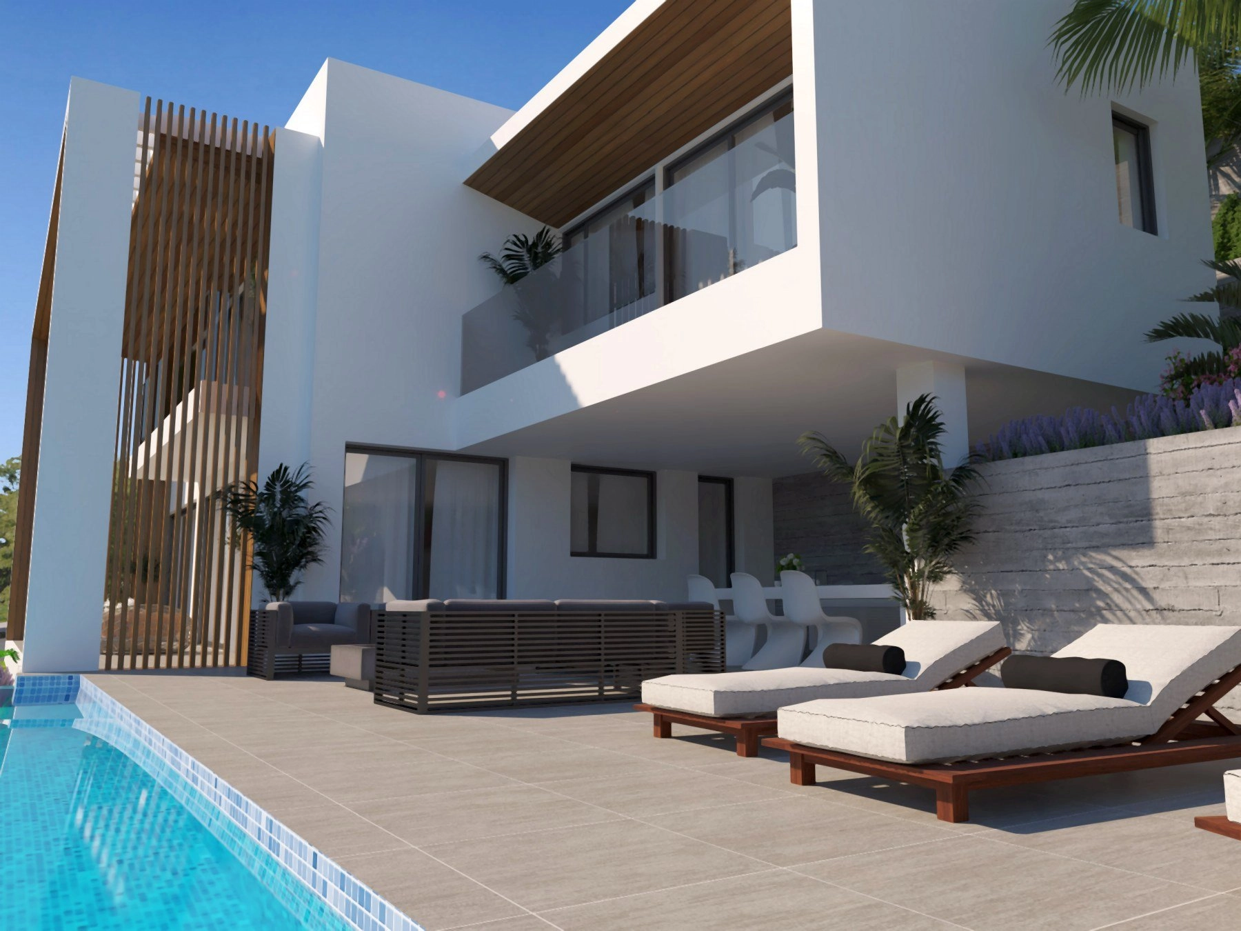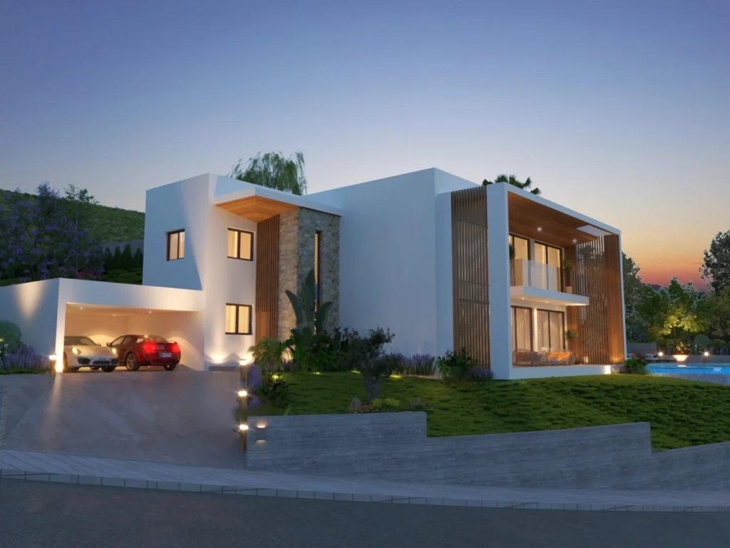 Perched on the dramatic hills above the coastline, this exceptional five-bedroom villa redefines the essence of contemporary luxury. Located in one of the most scenic corners of the island, the residence offers uninterrupted views of the sea and surrounding nature, combining elevated seclusion with timeless elegance.