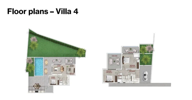 The villas boast refined architecture with clean lines, energy efficiency Class A, and a thoughtful layout that embraces the surrounding landscape and panoramic sea views. Every residence includes covered parking, a dedicated barbecue area, and a sun-soaked pool terrace, while the landscaped gardens add a touch of serenity to the living environment.