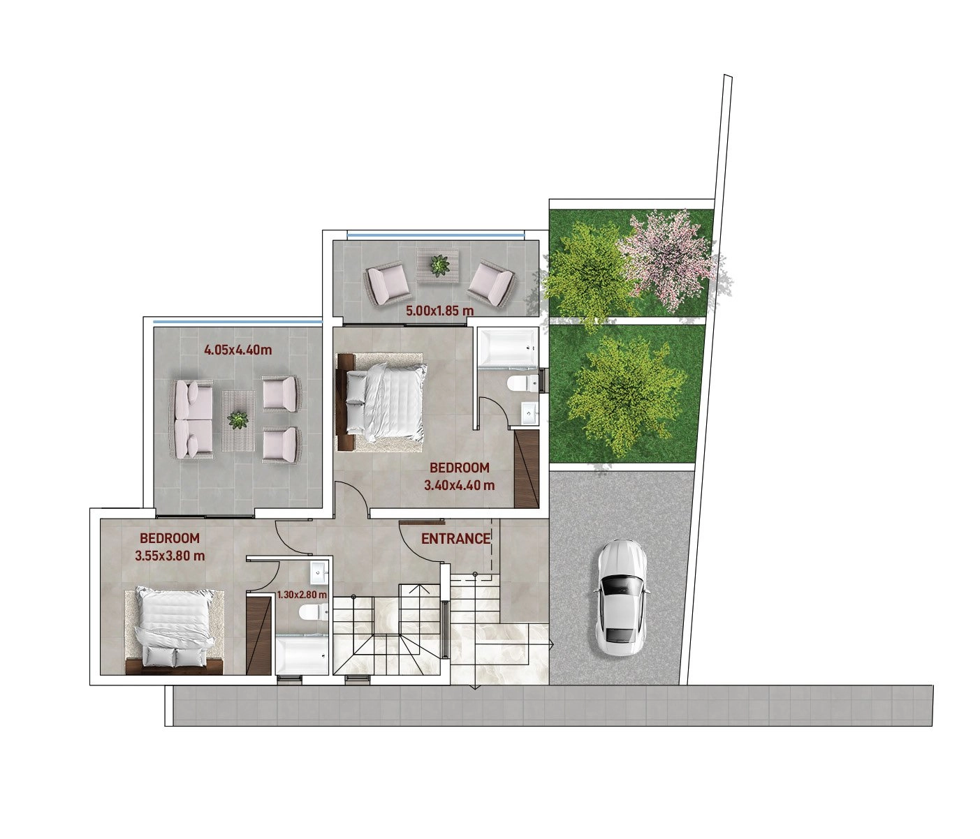 Nestled on a tranquil hillside in the charming village of Tsada, just minutes from Pafos, this new residential project offers seven beautifully crafted detached villas designed for contemporary Mediterranean living. Each home features three spacious bedrooms, generous interior areas, and large outdoor terraces that open onto private swimming pools—creating an ideal balance of comfort, privacy, and natural beauty.