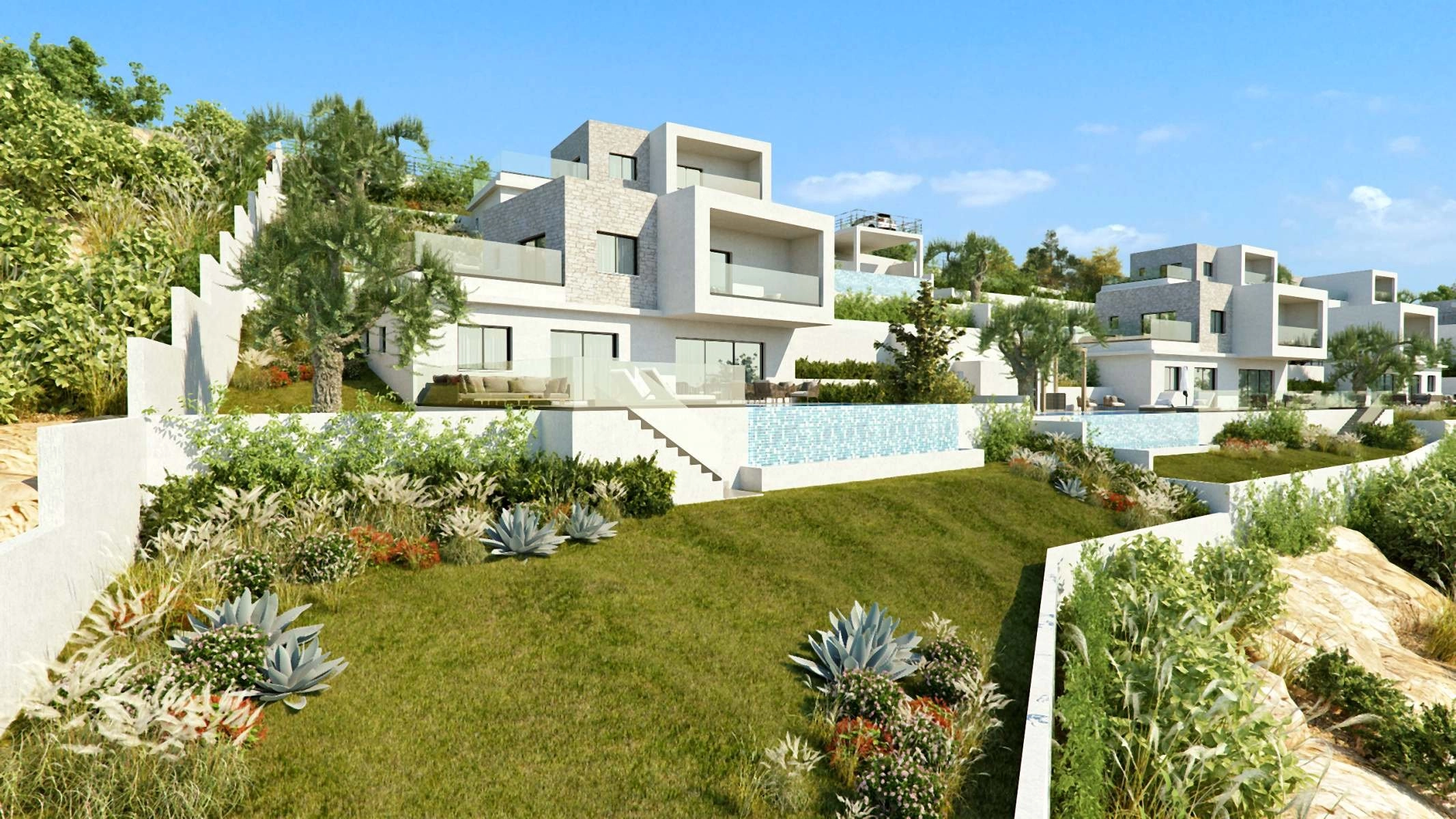 The villas boast refined architecture with clean lines, energy efficiency Class A, and a thoughtful layout that embraces the surrounding landscape and panoramic sea views. Every residence includes covered parking, a dedicated barbecue area, and a sun-soaked pool terrace, while the landscaped gardens add a touch of serenity to the living environment.