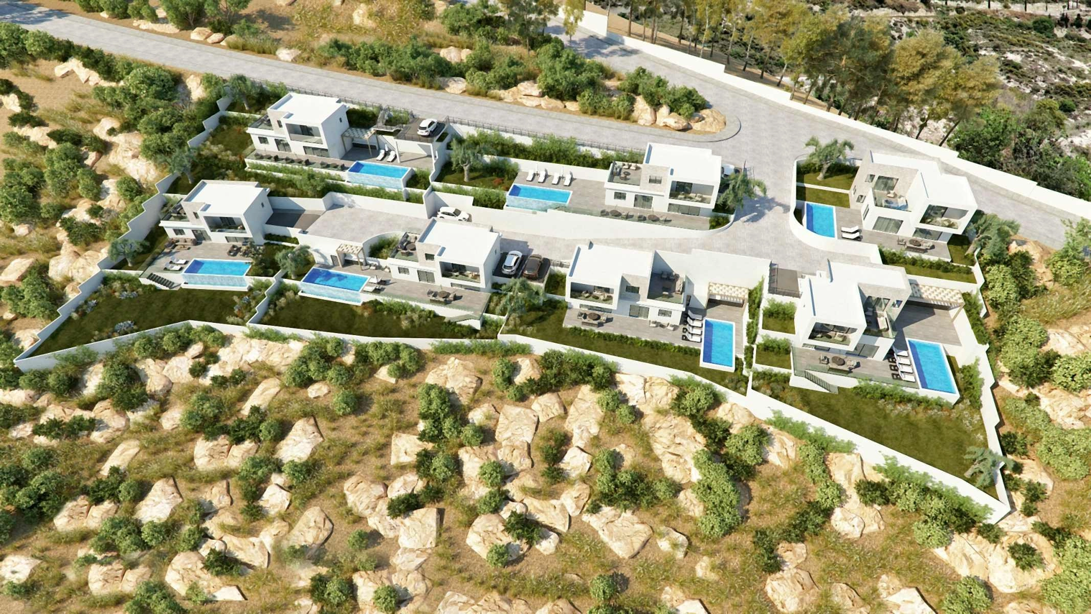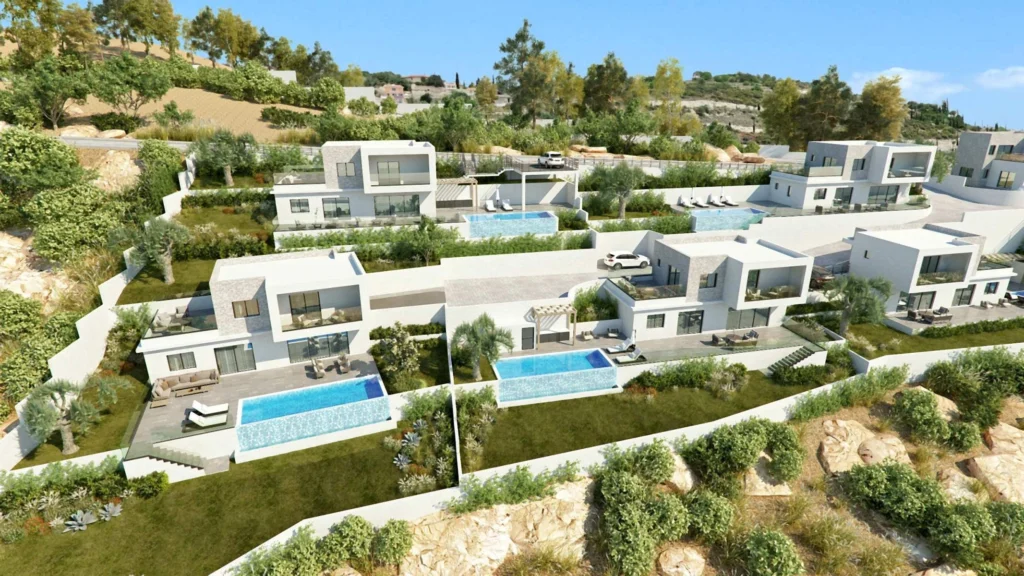 Nestled on a tranquil hillside in the charming village of Tsada, just minutes from Pafos, this new residential project offers seven beautifully crafted detached villas designed for contemporary Mediterranean living. Each home features three spacious bedrooms, generous interior areas, and large outdoor terraces that open onto private swimming pools—creating an ideal balance of comfort, privacy, and natural beauty.