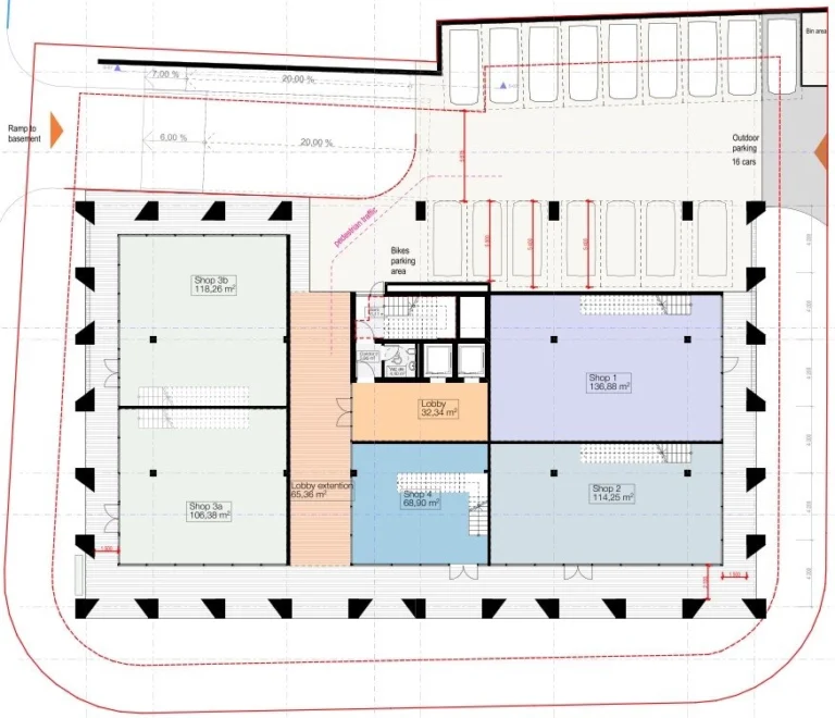 At the very ground level of this striking new business‑class development in central Paphos, a unique retail space awaits those who value visibility, style, and functionality. Positioned in a building that brings together offices, retail, and residences, this unit is perfectly suited for a flagship store, boutique, or high‑end showroom, offering direct access from a lively pedestrian zone.