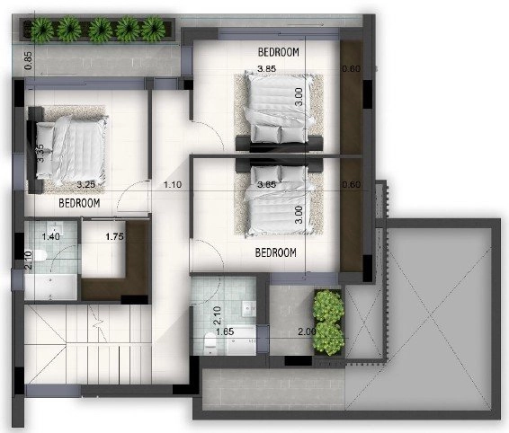 Inside, each villa features a contemporary layout, premium imported ceramic tiles, and high-quality branded sanitary ware. Outdoor areas are equally appealing, with private parking, covered verandas, and lush landscaped gardens—ideal for relaxing or entertaining. All homes are equipped with provisions for air conditioning, solar energy system, smart home control system and electric roller shutters.