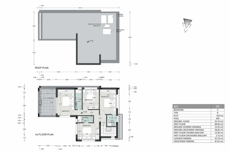 Outdoors, each villa includes a private swimming pool with shower, a BBQ area, a landscaped garden, and both covered and uncovered parking spaces. Built with high-quality materials and energy-efficient solutions (Energy Class A), the homes also feature air conditioning systems and double-glazed windows to ensure year-round comfort, tranquility, and reduced energy use.