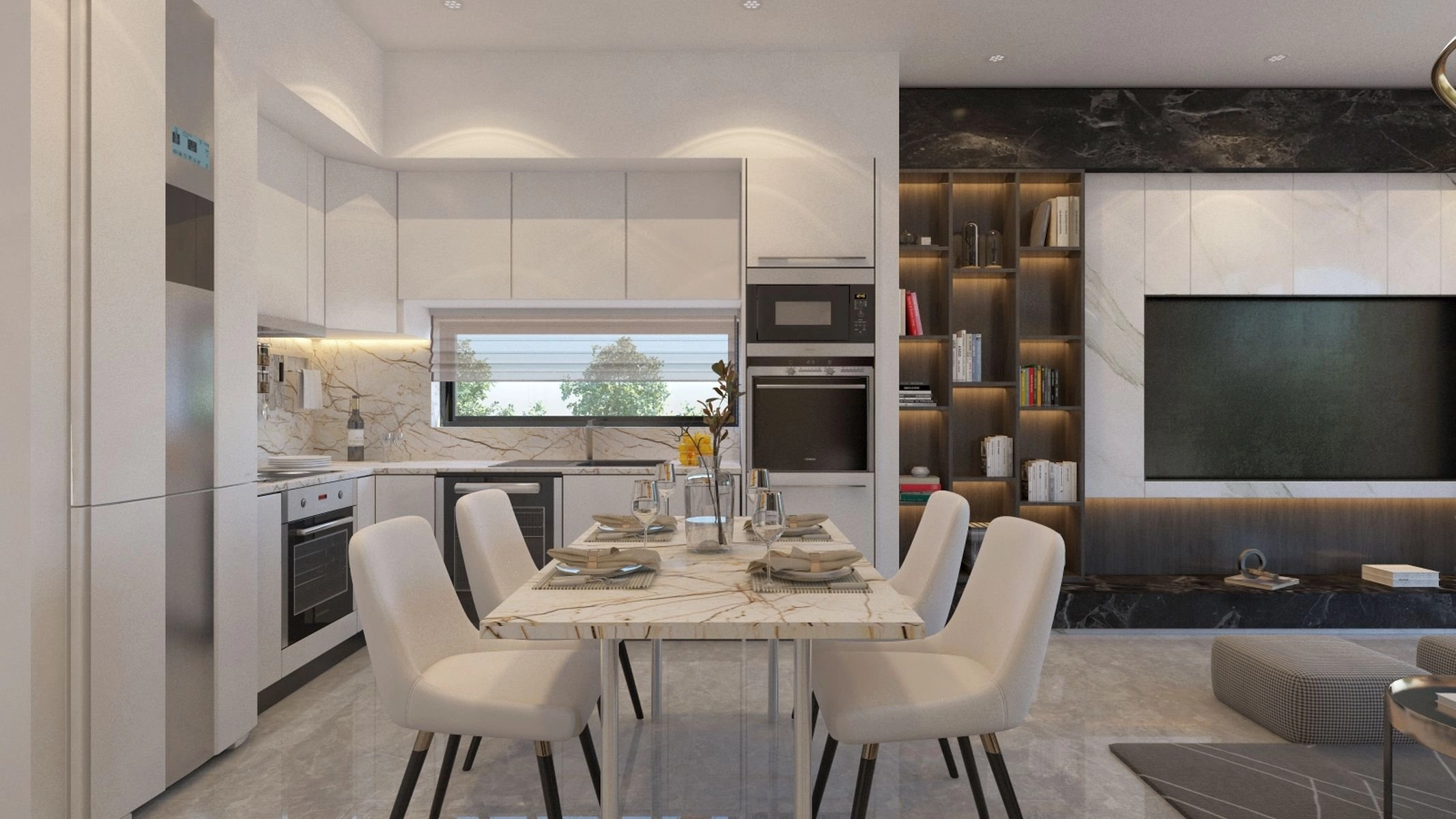 The elegant four-story complex features a selection of 1- and 2-bedroom apartments, thoughtfully designed to maximize natural light and space. Expansive balconies and large double-glazed windows provide excellent thermal and sound insulation, creating a peaceful and energy-efficient living environment. Each residence is equipped with a smart home system, allowing effortless control of lighting and climate settings.