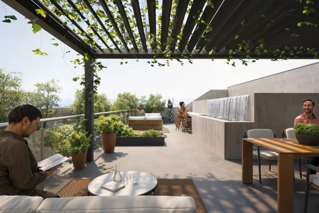 Residents benefit from private storage rooms, secure covered parking, and a stylish rooftop space with a swimming pool, lounge and dining areas, changing room, and a compact gym. With an Energy Class A rating and future-ready infrastructure, this project is an ideal choice for professionals, investors, or city dwellers looking for a home that blends style, practicality, and urban convenience in a rapidly developing location.