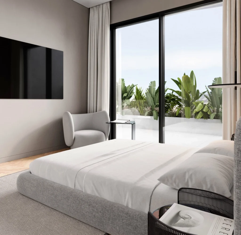 The building features a limited collection of thoughtfully designed apartments with one or two bedrooms, all finished to high standards and tailored for comfort and functionality. Large verandas extend the living space outdoors, while floor-to-ceiling windows fill each home with natural light. Selected upper-floor units enjoy private roof terraces with open-sky views — perfect for creating a relaxing lounge or personal retreat.