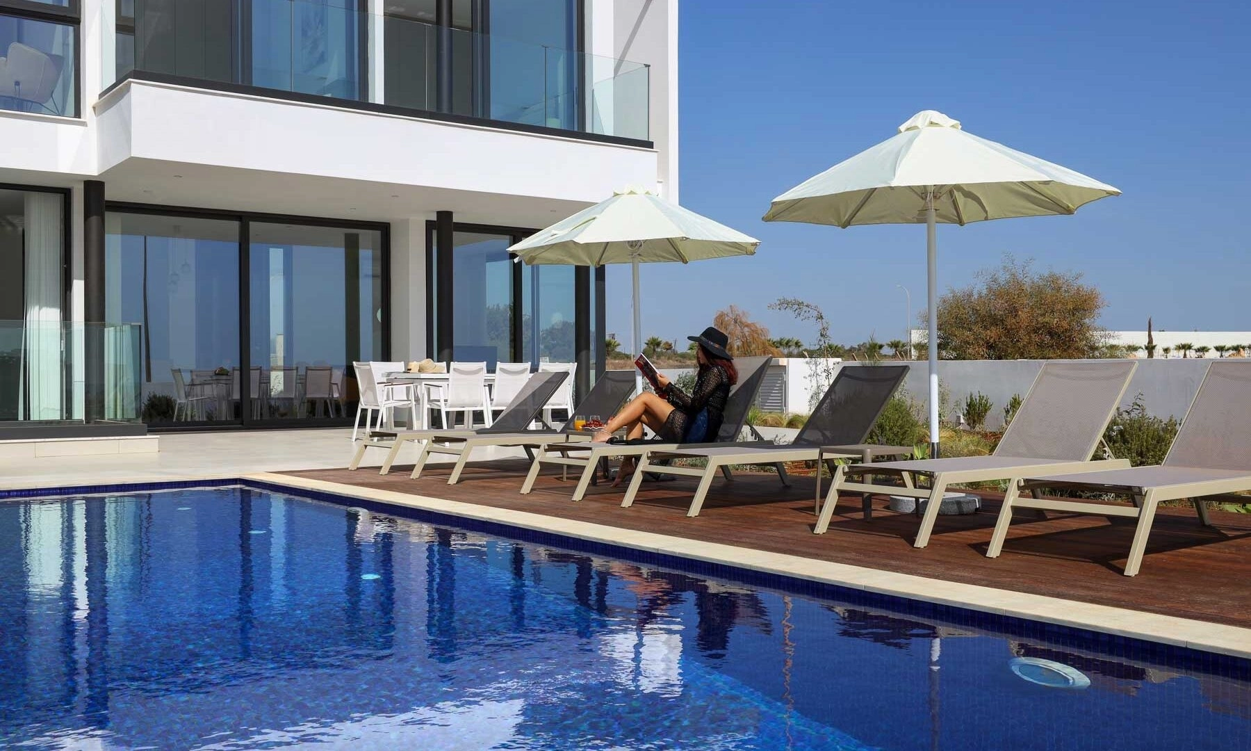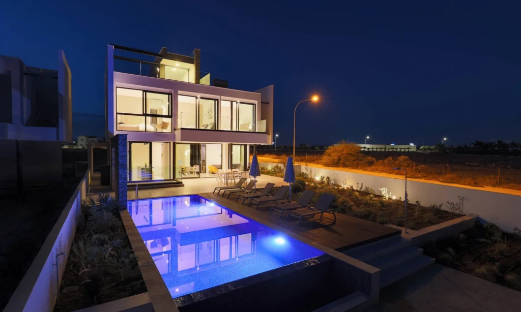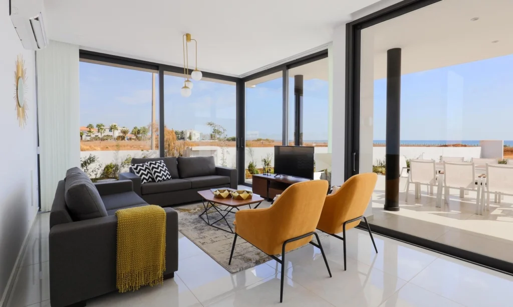 Reference ID: #SA30958Price details: €1,590,000 +VATAn exclusive new development of luxury living spaces.Built close enough together to create a delightful little community, each home offers plenty of space to allow for maximum privacy and comfort. The sparkling white exterior flanked by rugged stone paneling and glittering glass façade exude a sense of luxury and carefree elegance, complemented by the vast white sands and azure waters of the island’s eastern coastline.The project comprise 7 villas, 5 seaview and 2 seafront, all with panoramic sea views. Each residence has three floors which include a lower floor, ground floor and first floor, as well as two bedrooms and one master bedroom, and three bathrooms. Ample balconies overlook lush greenery and an overflow high-tech swimming pool secluded in a beautifully landscaped garden, for residents to enjoy in the privacy of their own home. Each residence boasts its own roof garden, with stunning sea views across the horizon.The peaceful area of Ayia Thekla has made a name for itself as a prime location for residential and holiday homes, thanks to its extensive natural beauty and close proximity to the Ayia Napa Marina. Despite this surge in popularity however, the area has retained its village charm, and remains a peaceful haven of incredible beauty.Stroll along white, sandy beaches and dip your toes into the crystal clear waters. Enjoy fresh seafood in the excellent restaurants dotted along the the coastline, with fresh fish supplied in abundance from Ayia Thekla’s picturesque fishing harbour.Internal area: 159sq.mCovered veranda: 32sq.mUncovered veranda: 34sq.mLower level: 85sq.mTotal buildable area: 309sq.mPlot area: 601sq.mPLUS V.A.T