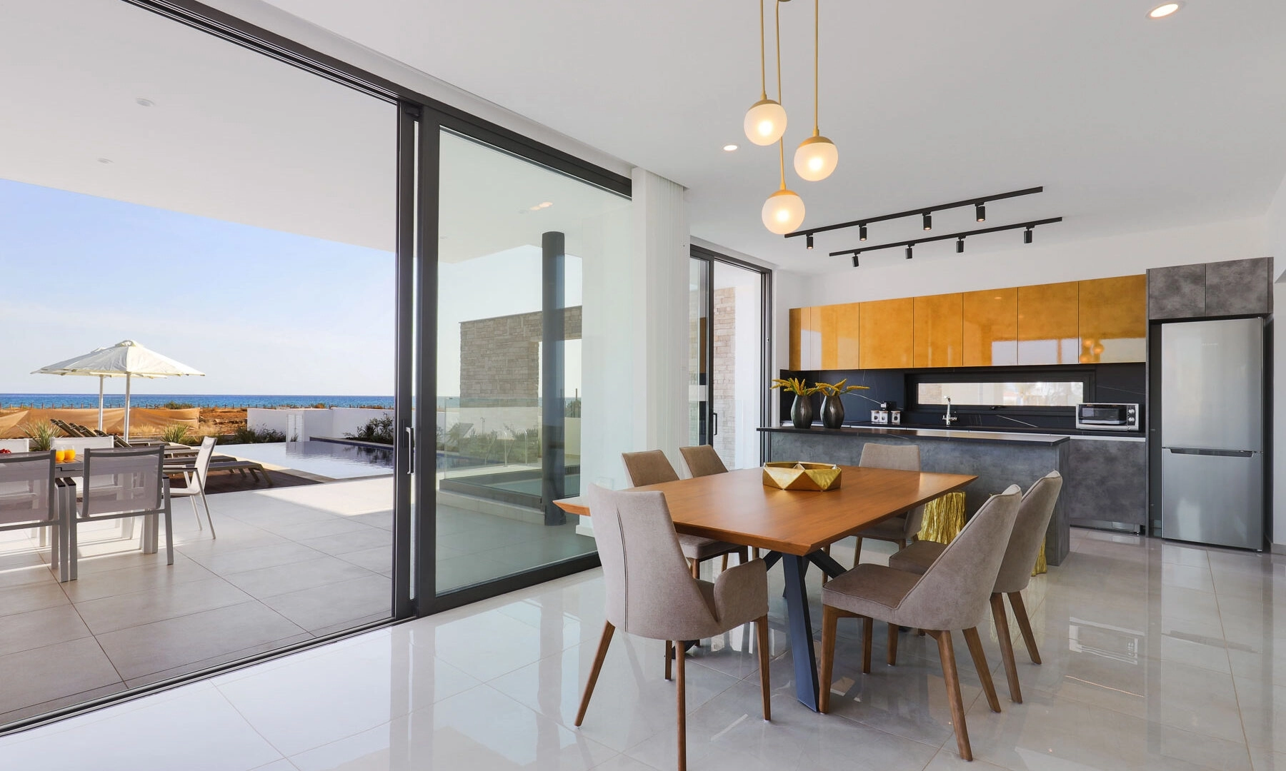 Reference ID: #SA30958Price details: €1,590,000 +VATAn exclusive new development of luxury living spaces.Built close enough together to create a delightful little community, each home offers plenty of space to allow for maximum privacy and comfort. The sparkling white exterior flanked by rugged stone paneling and glittering glass façade exude a sense of luxury and carefree elegance, complemented by the vast white sands and azure waters of the island’s eastern coastline.The project comprise 7 villas, 5 seaview and 2 seafront, all with panoramic sea views. Each residence has three floors which include a lower floor, ground floor and first floor, as well as two bedrooms and one master bedroom, and three bathrooms. Ample balconies overlook lush greenery and an overflow high-tech swimming pool secluded in a beautifully landscaped garden, for residents to enjoy in the privacy of their own home. Each residence boasts its own roof garden, with stunning sea views across the horizon.The peaceful area of Ayia Thekla has made a name for itself as a prime location for residential and holiday homes, thanks to its extensive natural beauty and close proximity to the Ayia Napa Marina. Despite this surge in popularity however, the area has retained its village charm, and remains a peaceful haven of incredible beauty.Stroll along white, sandy beaches and dip your toes into the crystal clear waters. Enjoy fresh seafood in the excellent restaurants dotted along the the coastline, with fresh fish supplied in abundance from Ayia Thekla’s picturesque fishing harbour.Internal area: 159sq.mCovered veranda: 32sq.mUncovered veranda: 34sq.mLower level: 85sq.mTotal buildable area: 309sq.mPlot area: 601sq.mPLUS V.A.T