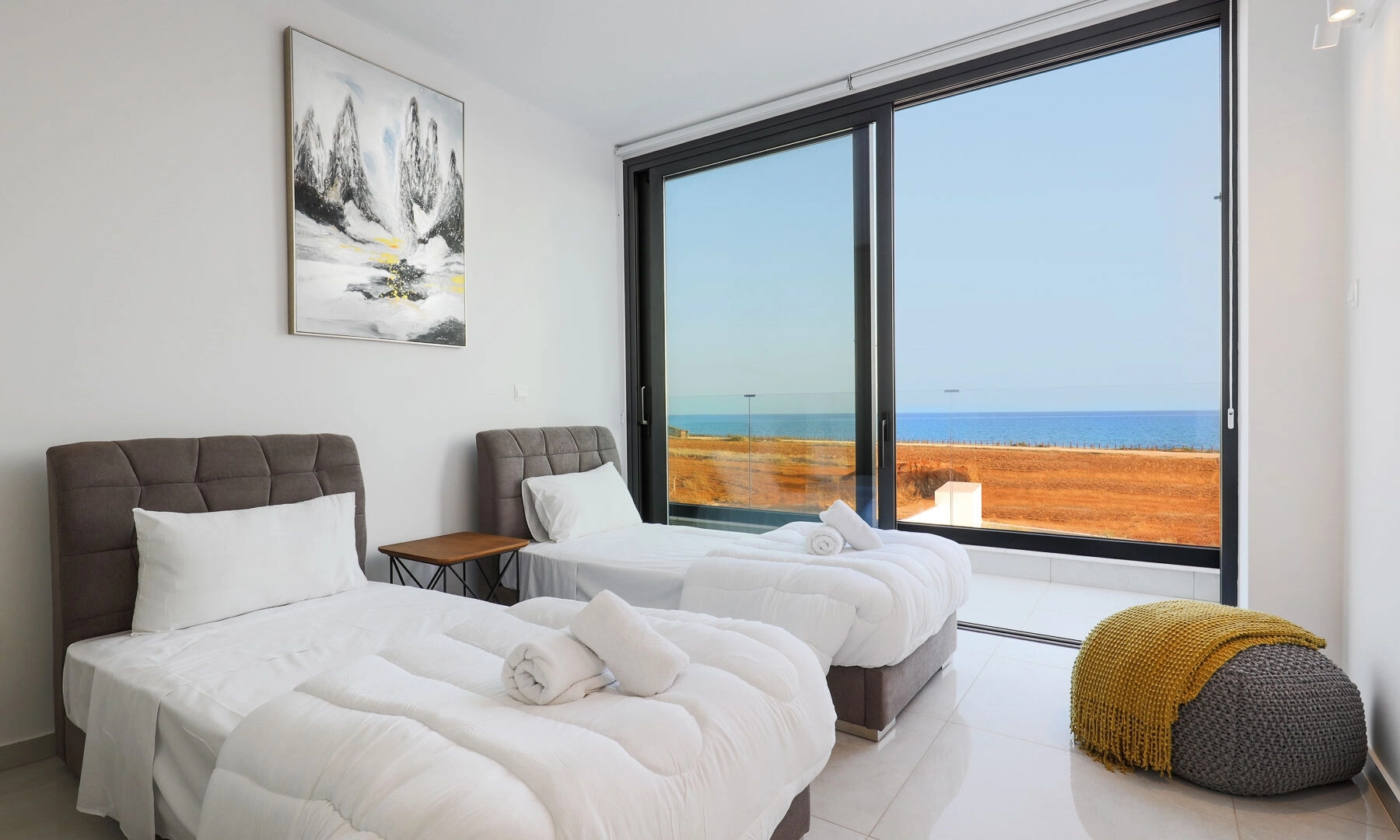 Reference ID: #SA30958Price details: €1,590,000 +VATAn exclusive new development of luxury living spaces.Built close enough together to create a delightful little community, each home offers plenty of space to allow for maximum privacy and comfort. The sparkling white exterior flanked by rugged stone paneling and glittering glass façade exude a sense of luxury and carefree elegance, complemented by the vast white sands and azure waters of the island’s eastern coastline.The project comprise 7 villas, 5 seaview and 2 seafront, all with panoramic sea views. Each residence has three floors which include a lower floor, ground floor and first floor, as well as two bedrooms and one master bedroom, and three bathrooms. Ample balconies overlook lush greenery and an overflow high-tech swimming pool secluded in a beautifully landscaped garden, for residents to enjoy in the privacy of their own home. Each residence boasts its own roof garden, with stunning sea views across the horizon.The peaceful area of Ayia Thekla has made a name for itself as a prime location for residential and holiday homes, thanks to its extensive natural beauty and close proximity to the Ayia Napa Marina. Despite this surge in popularity however, the area has retained its village charm, and remains a peaceful haven of incredible beauty.Stroll along white, sandy beaches and dip your toes into the crystal clear waters. Enjoy fresh seafood in the excellent restaurants dotted along the the coastline, with fresh fish supplied in abundance from Ayia Thekla’s picturesque fishing harbour.Internal area: 159sq.mCovered veranda: 32sq.mUncovered veranda: 34sq.mLower level: 85sq.mTotal buildable area: 309sq.mPlot area: 601sq.mPLUS V.A.T