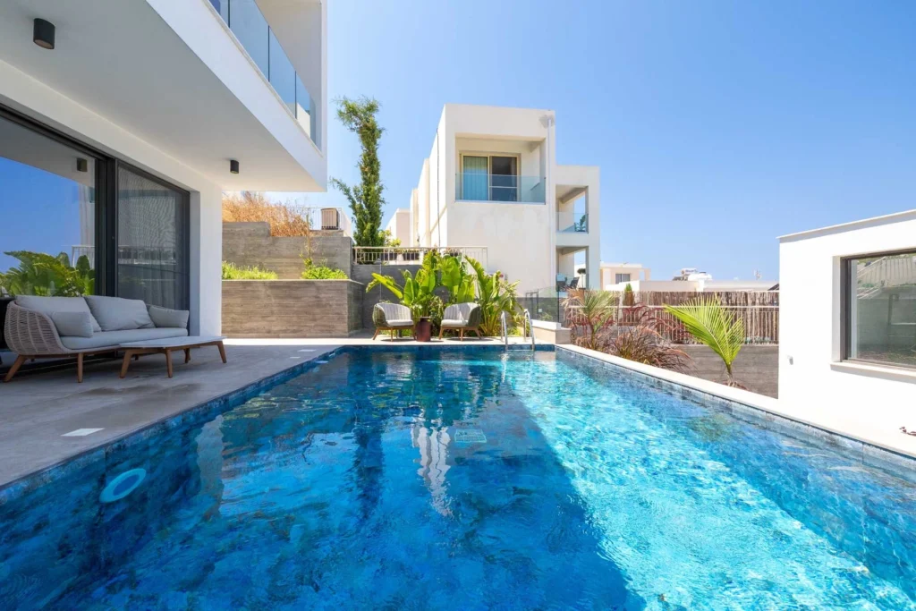 Nestled in the peaceful coastal village of Chloraka, this exquisite villa blends timeless Mediterranean charm with contemporary living. Surrounded by lush gardens and bathed in golden sunlight, it offers a serene escape just moments from the sea.
