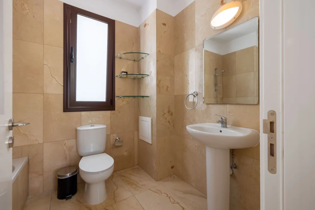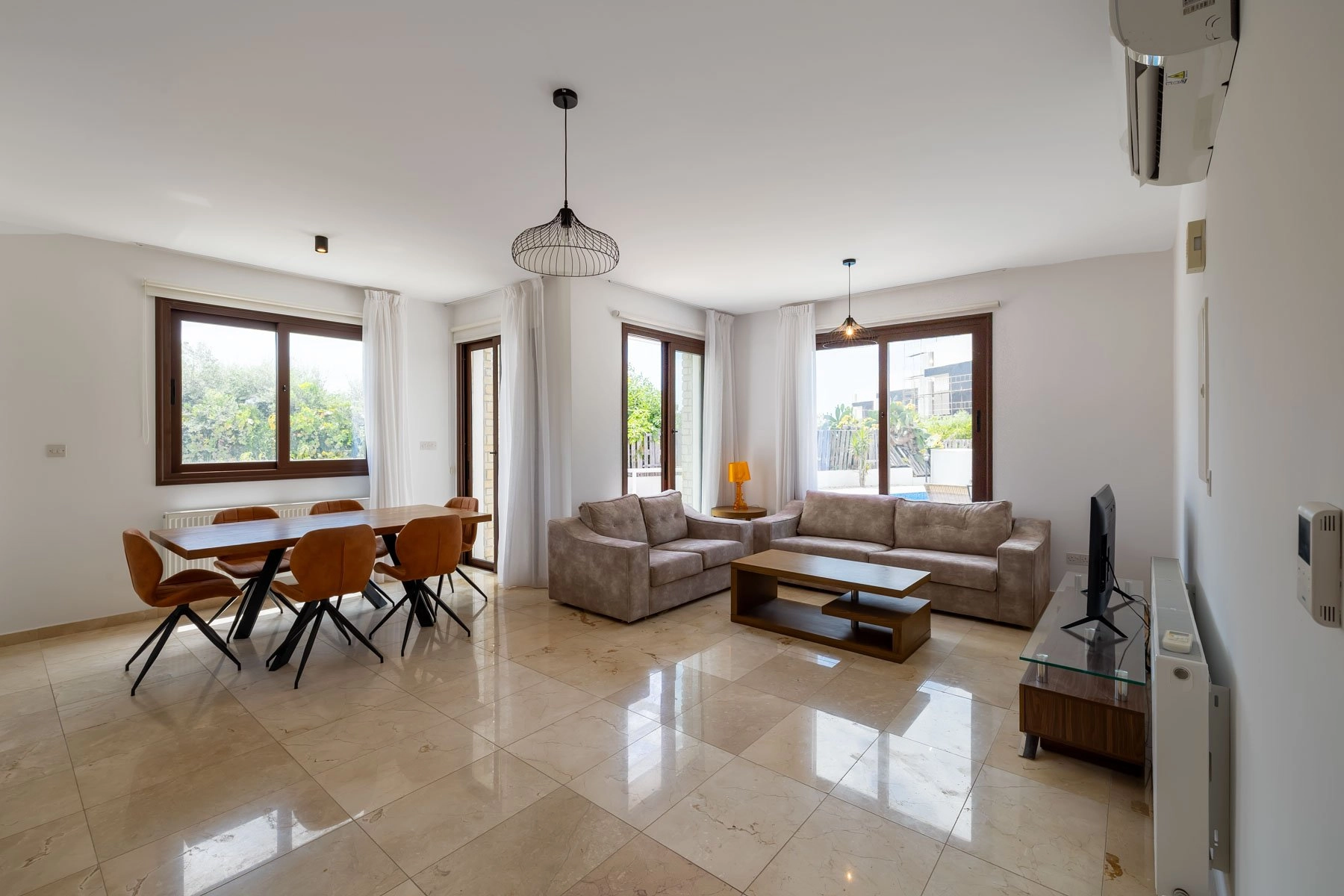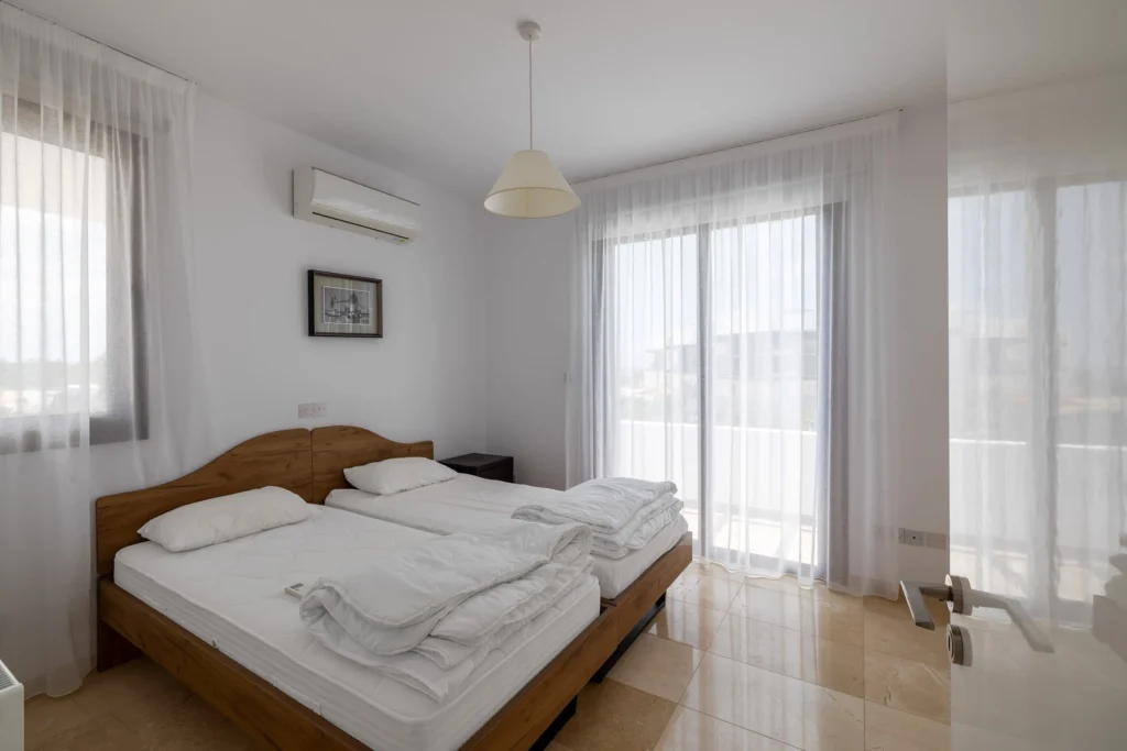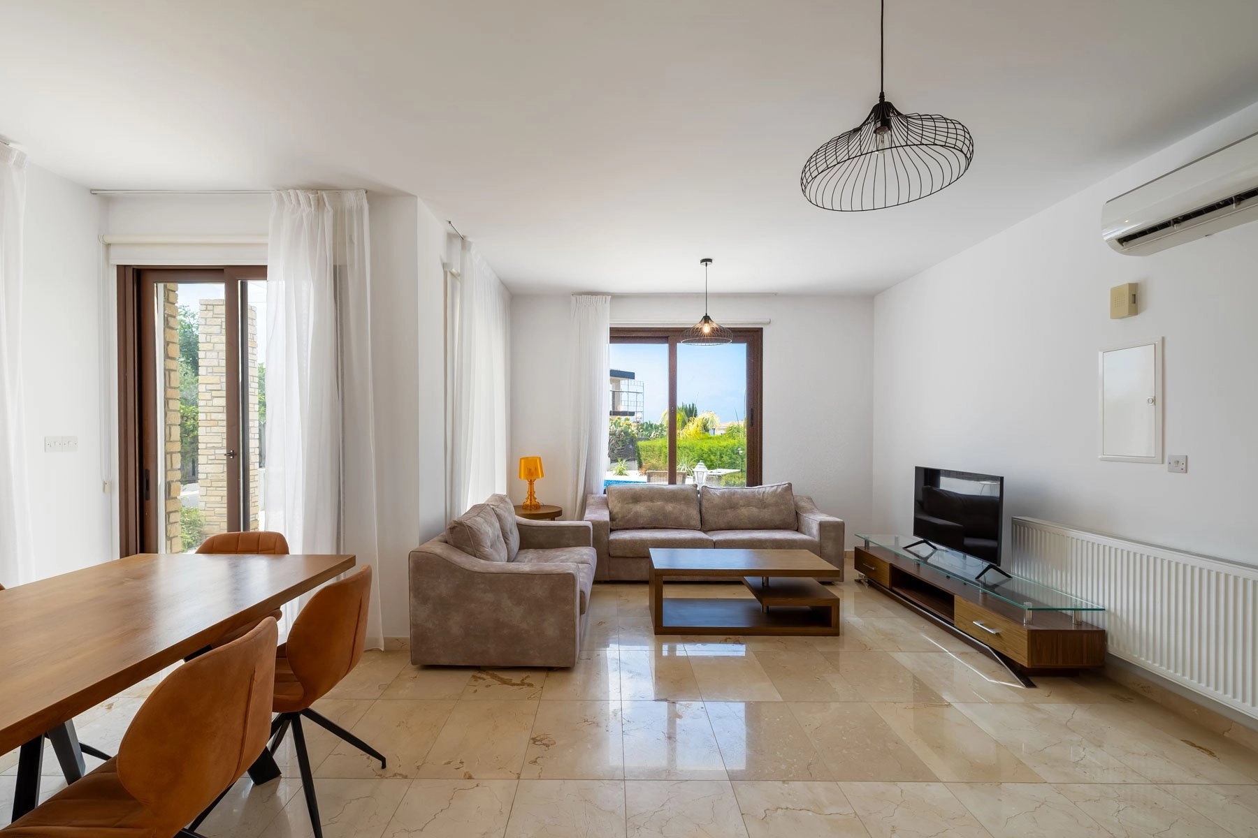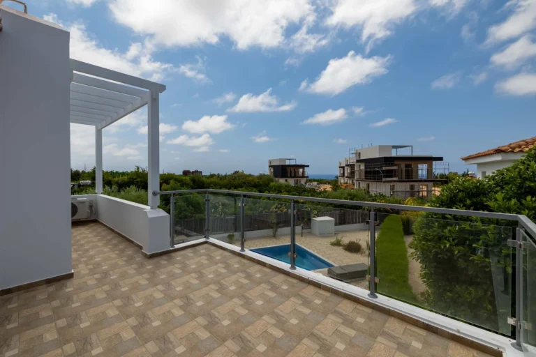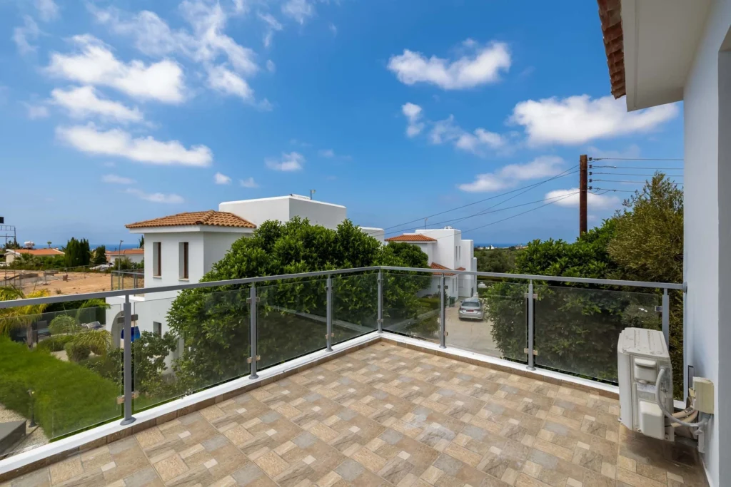 This beautiful 3-bedroom home is located in the picturesque Pegeia area of Paphos, offering stunning sea views and a comfortable, modern living space. The property features one bedroom on the entrance level, with two additional bedrooms upstairs, providing privacy and flexibility.