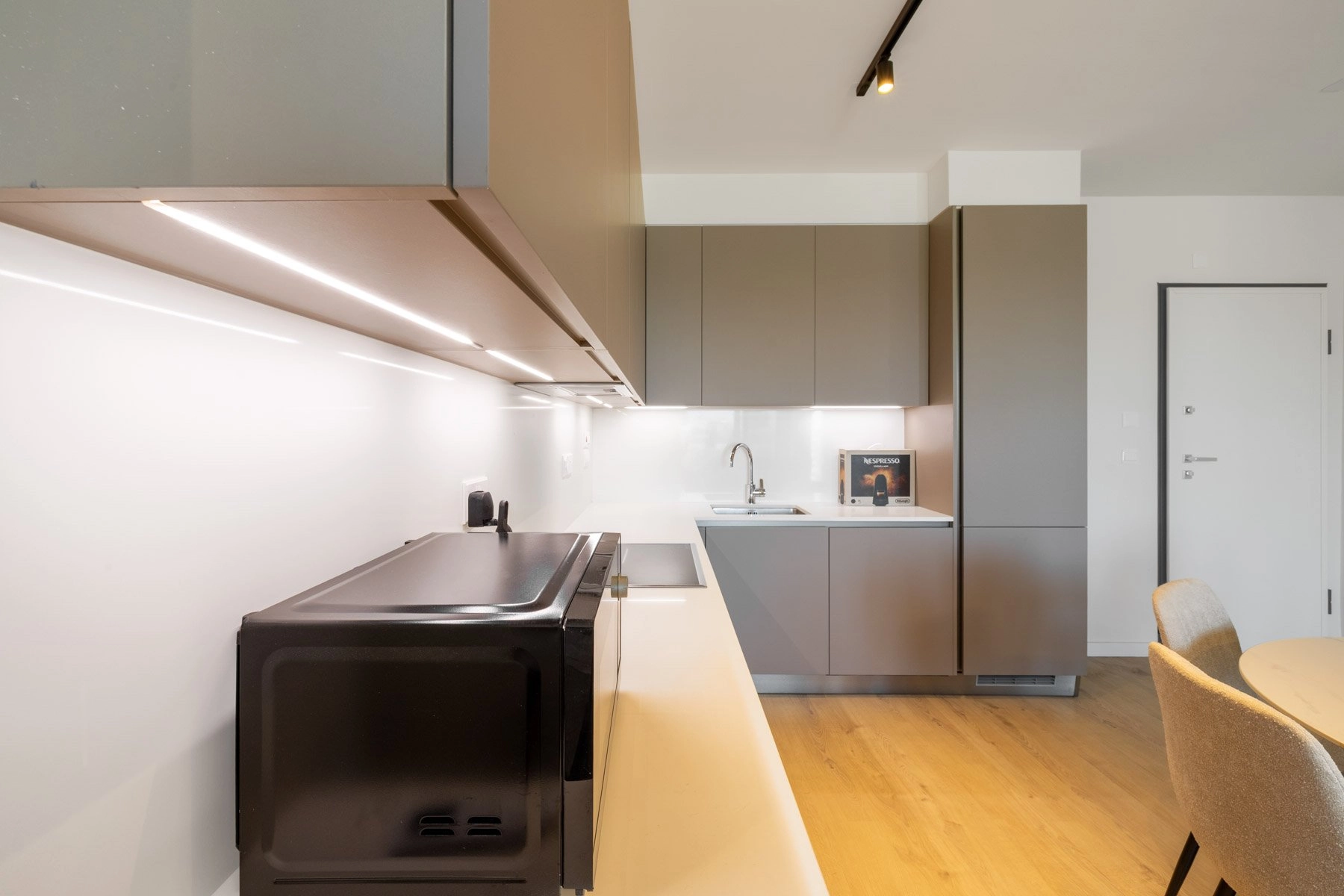 Delivered fully furnished and equipped with quality appliances, the apartment is ready to welcome its new owners from day one. Large windows and sliding doors invite natural light inside and create a smooth transition to the outdoor spaces, where the garden and pool form a serene retreat for both relaxation and entertaining.