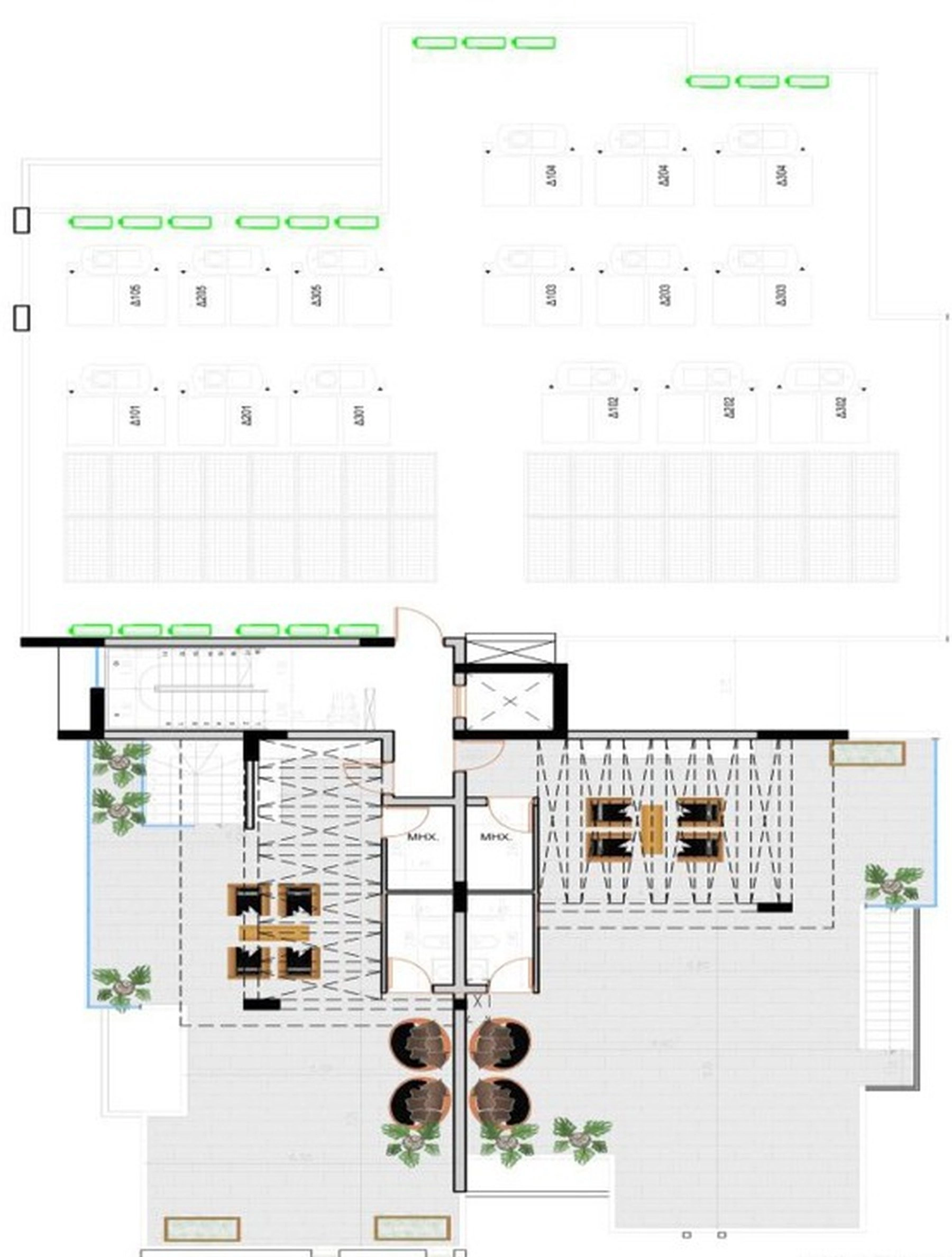 The elegant three-storey building features two-bedroom apartments and spacious penthouses with private terraces, providing ideal spaces to relax outdoors and enjoy the surrounding environment.
